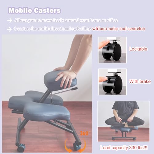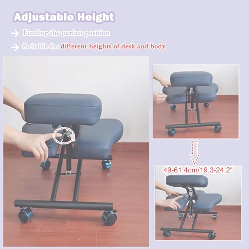 gonomic Kneeling Chair, Office Kneeling Chair, Improves and Corrects Posture Stool, Adjustable Kneeling Chair w Brake Gliding Casts for Office and Home
