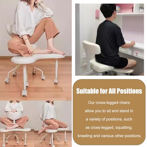 Height-Adjustable Kneeling Office Chair 330lbs, Soul Seat Cross Legged Chair on Wheels, Posture Chair for Desk Home Meeting/study/powder Room, Meditation Squatting Stool