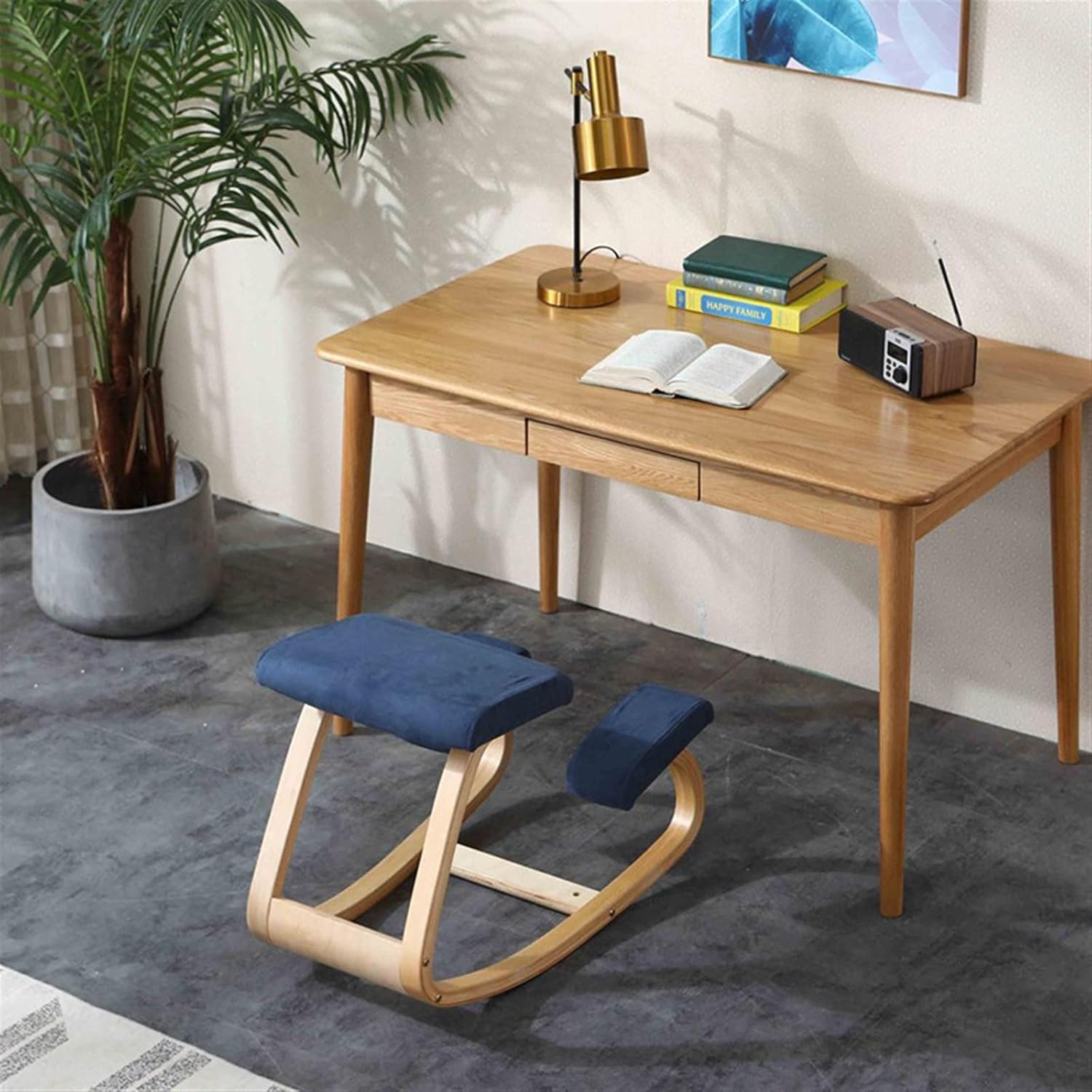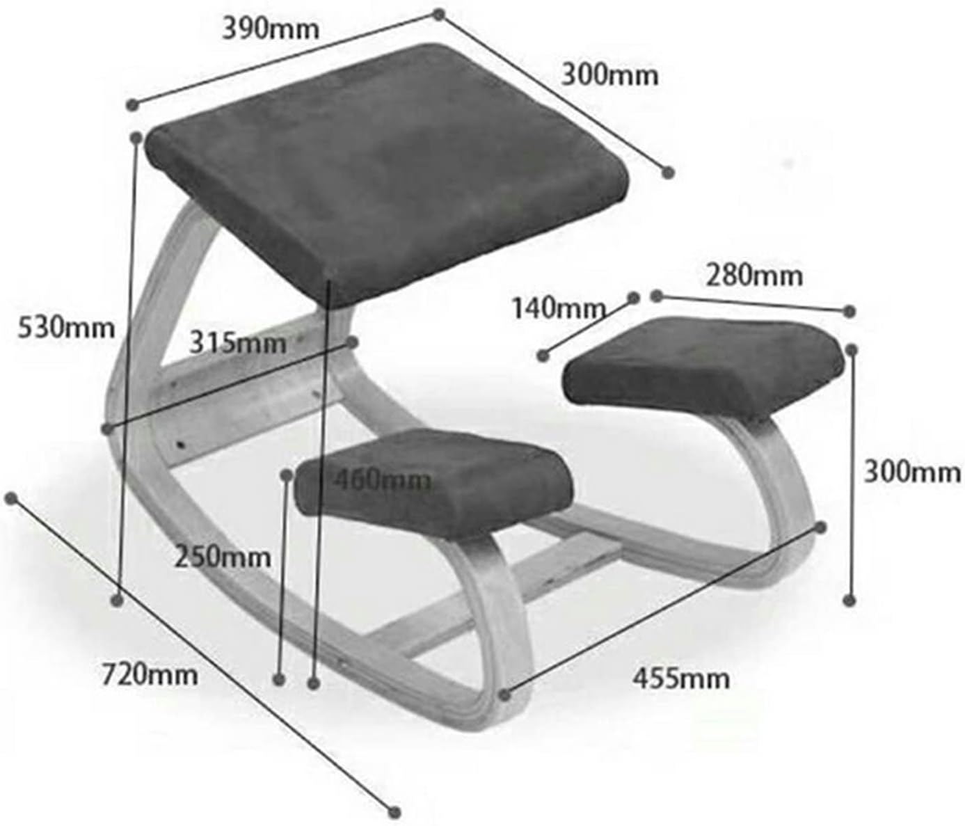 Ergonomic Wood Kneeling Chair with Thick Cushion for Posture Correction - Rocking Desk Seat for Back and Shoulder Alignment