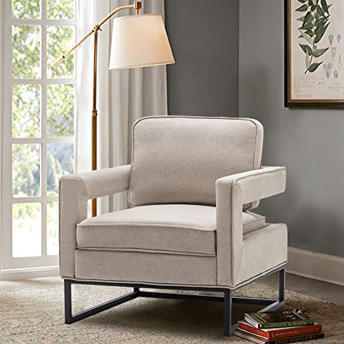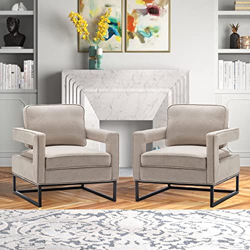 Alunaune Upholstered Accent Chair Living Room Chairs Set of 2, Modern Armchair Mid Century Backrest Lounge Chair, Removable Seat Cushion Sofa Slipper Chairs for Bedroom-Grey