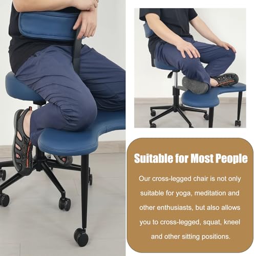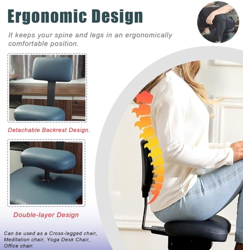 ADHD Office Chairs for Adults Cross Legged, Foot Rest Cross Legged Kneeling Chair for Yoga Lovers, Adjustable Ergonomic Chairs Stool for Short People(Blue)