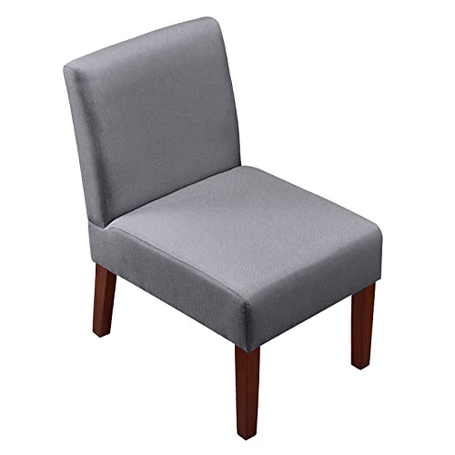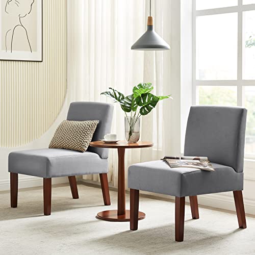 Fabric Accent Chair Set of 2 with Round Wood Table, Slipper Chair, Side Chair, Upholstered Lounge Chair for Living Room, Bedroom, Linen Fabric Padded Reading Chair (Beige)
