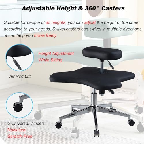 Ergonomic Kneeling Chair, Office Kneeling Chair, Improves and Corrects Posture Stool, Adjustable Kneeling Chair with Brake Gliding Casters for Office and Home independence