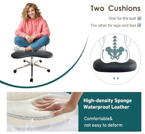 Mobile Kneeling Chair with 5 Universal Wheels for Back & Leg Pains, Height Adjustable Cross-Legged Chair, Ergonomic Kneeling Chair for Home and Office(White)