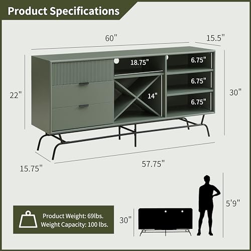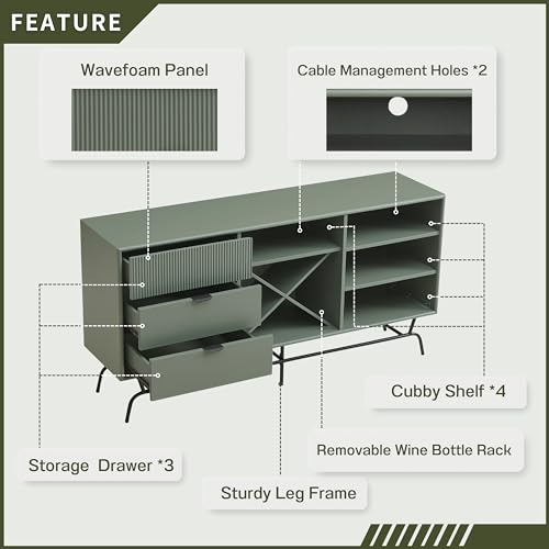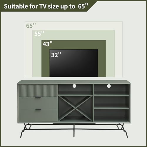 24/7 Shop at Home Kama Modern TV Stand with Storage, Media Console Entertainment Center, Dining Sideboard Buffet Cabinet for Living Room, Bedroom, Family, Sage Green