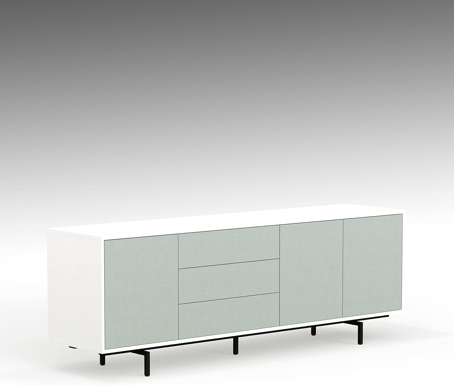 Glenwillow Home Atlas 78" x 28" Highboy Modern TV Stand Cabinet and Sideboard - White Frame, Jade Ocean Door/Drawers, Black Base