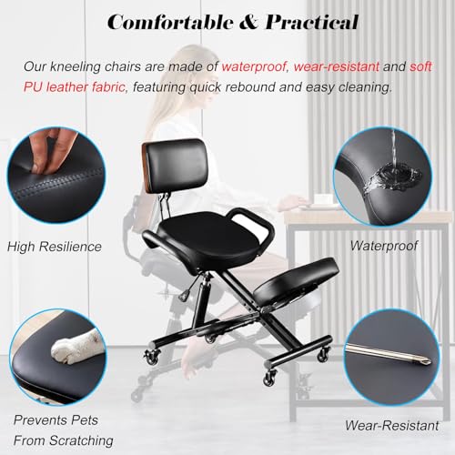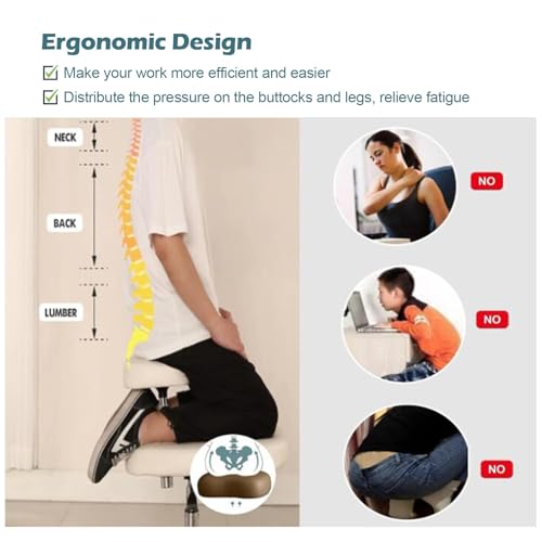 for People with Low Back Pain Ergonomic Kneeling Chair Height Adjustable, Kneeling Chair with Wheels and Backrest, Cross-Legged Chair for Home Workers