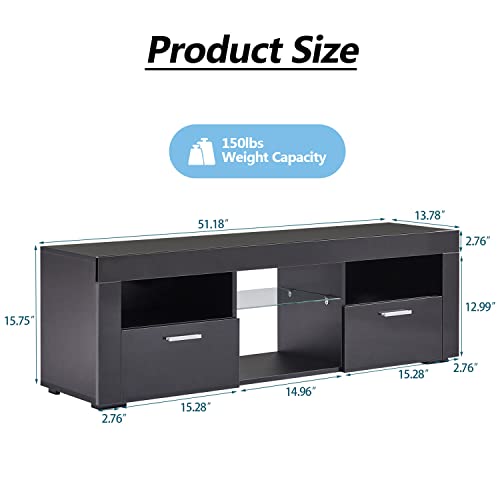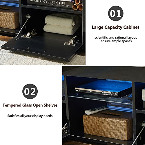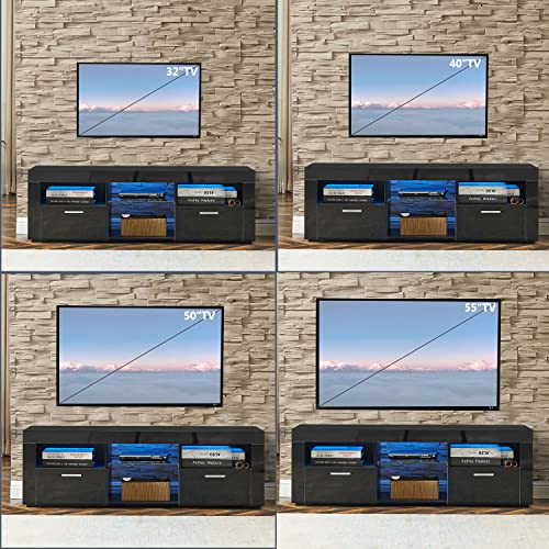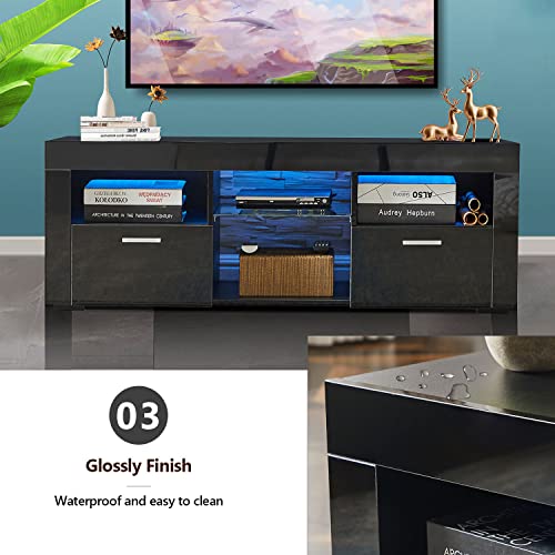 TV Stand for 55+ 60 inch Tvs - Morden TV Stand with LED Lights, High Glossy Entertainment Center with 2 Flip Cabinet, LED Media Console Table Cabinet Desk for Living Room