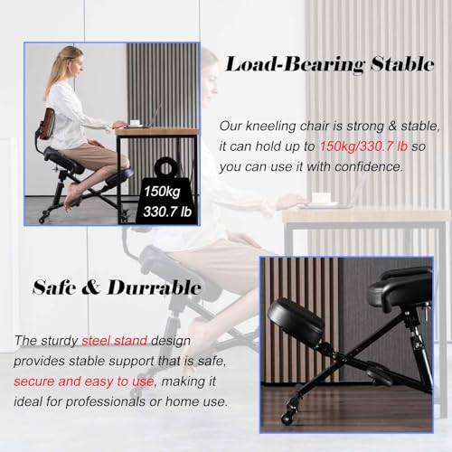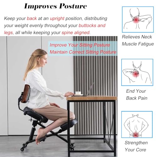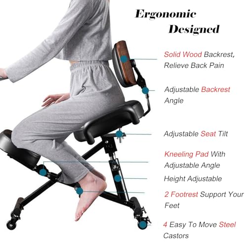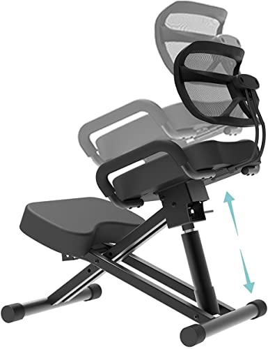 Master Massage Ergonomic Kneeling Chair for Upright Posture,Foldable Posture Chair with Thick Memory Foam Cushions,Adjustable Stool for Home, Office- Relieving Back and Neck Pain (with Backrest)