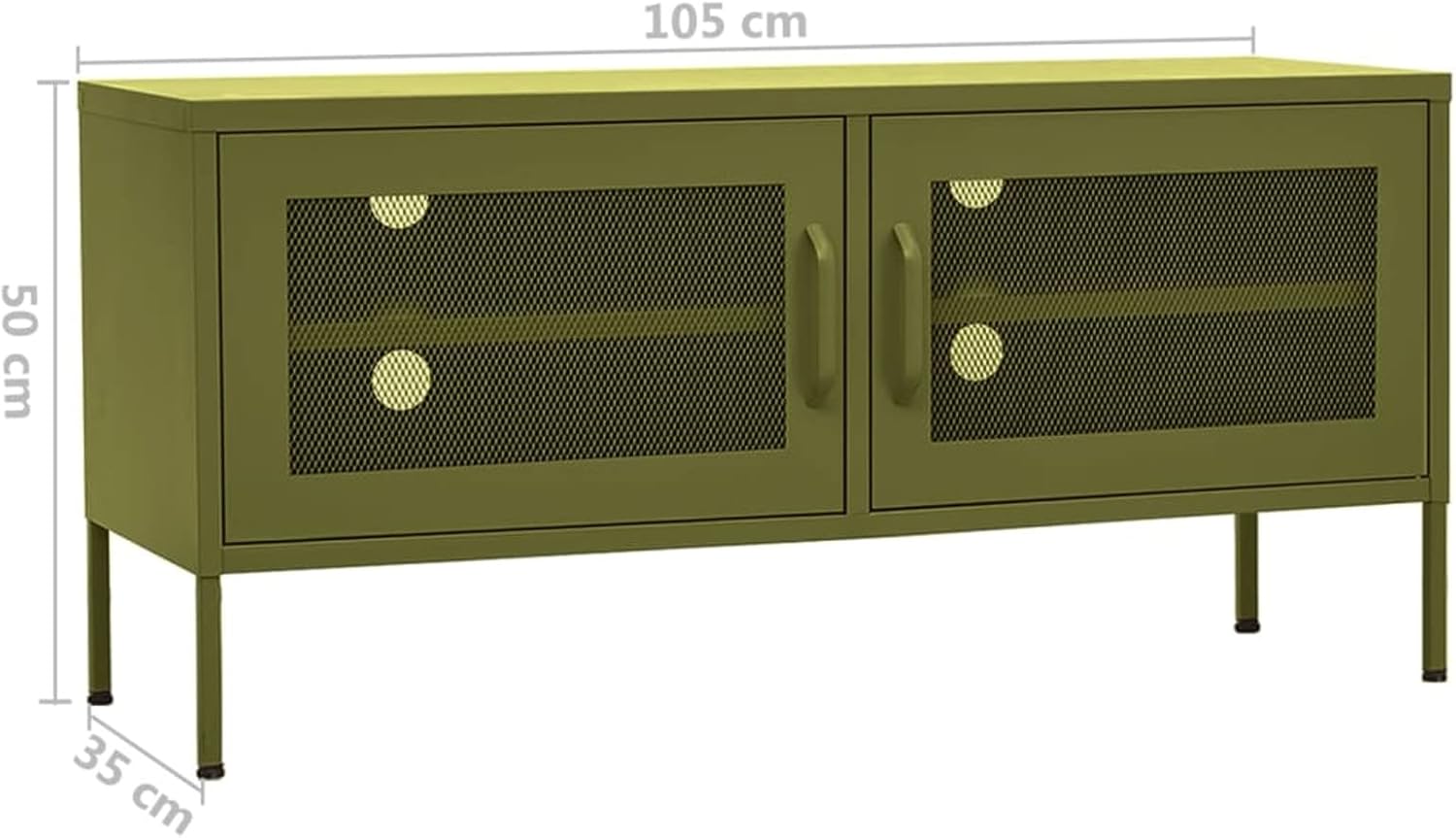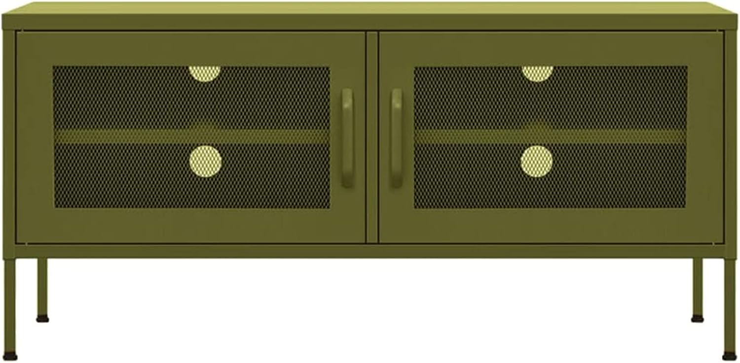 TV Stand Olive Green 41.3"x13.8"x19.7" Steel,Industrial Steel TV Cabinet with 2 Mesh Doors and Storage Shelf, Olive Green, 43" x 13.8" x 19.7" Living Room Furniture