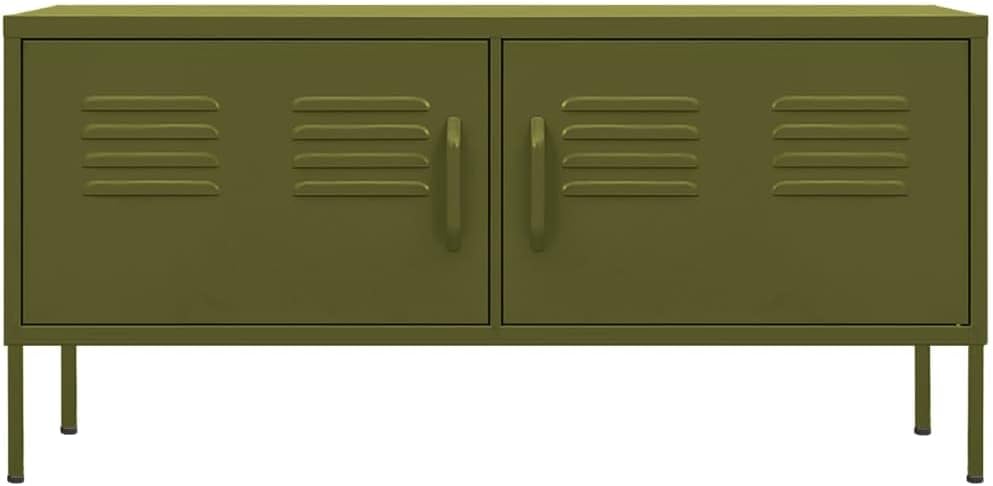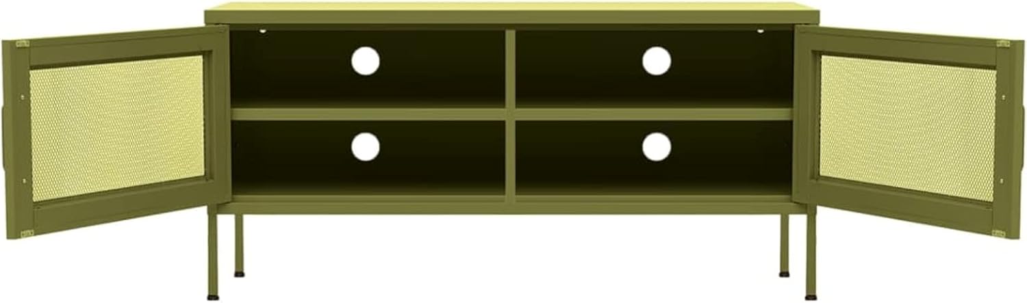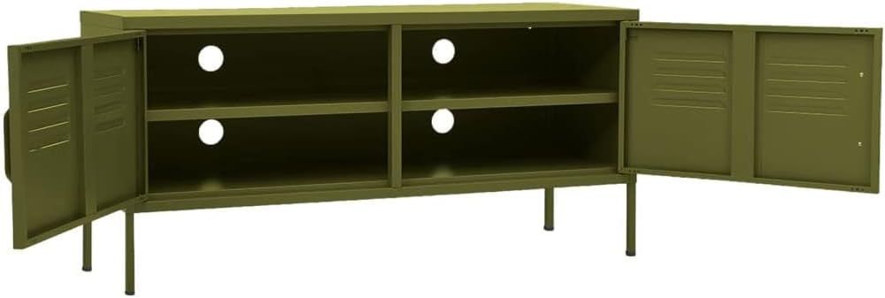 TV Stand Olive Green 41.3"x13.8"x19.7" Steel,Sturdy Steel TV Stand with Ample Storage and Cable Management in Olive Green Living Room Furniture
