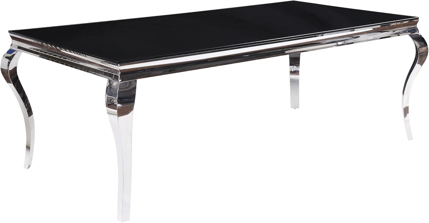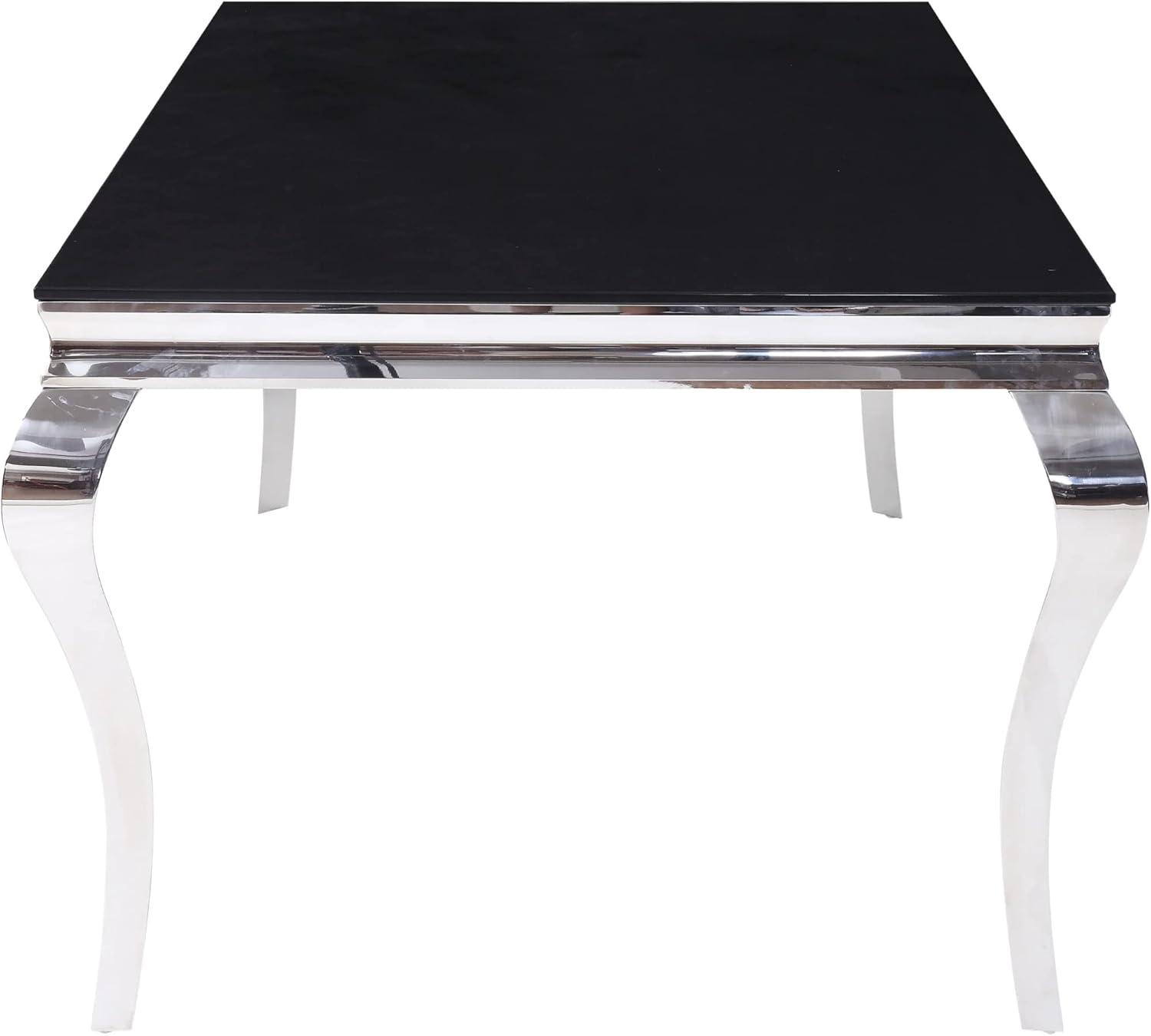 Fabiola Dining Table in Stainless Steel & Black Glass 62070