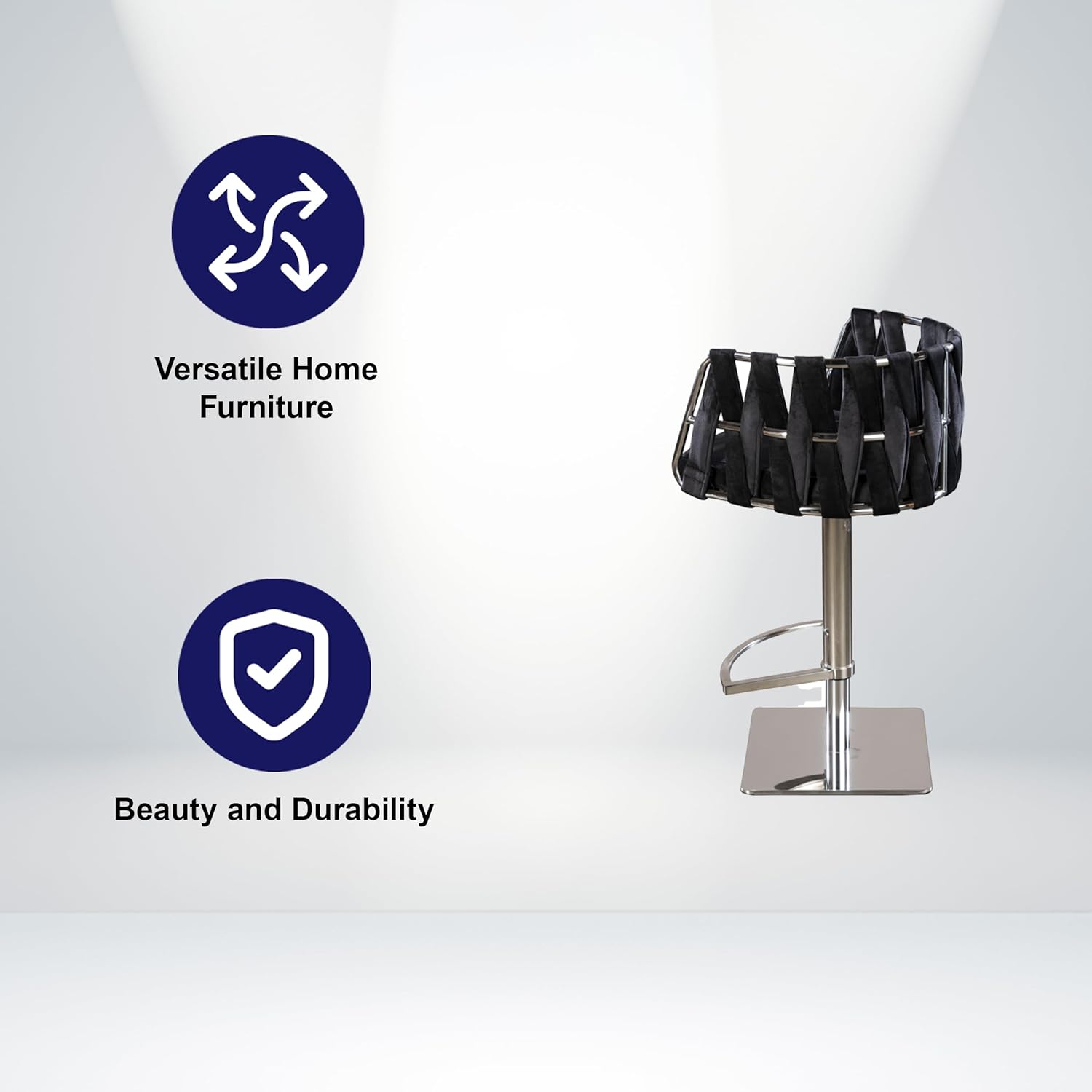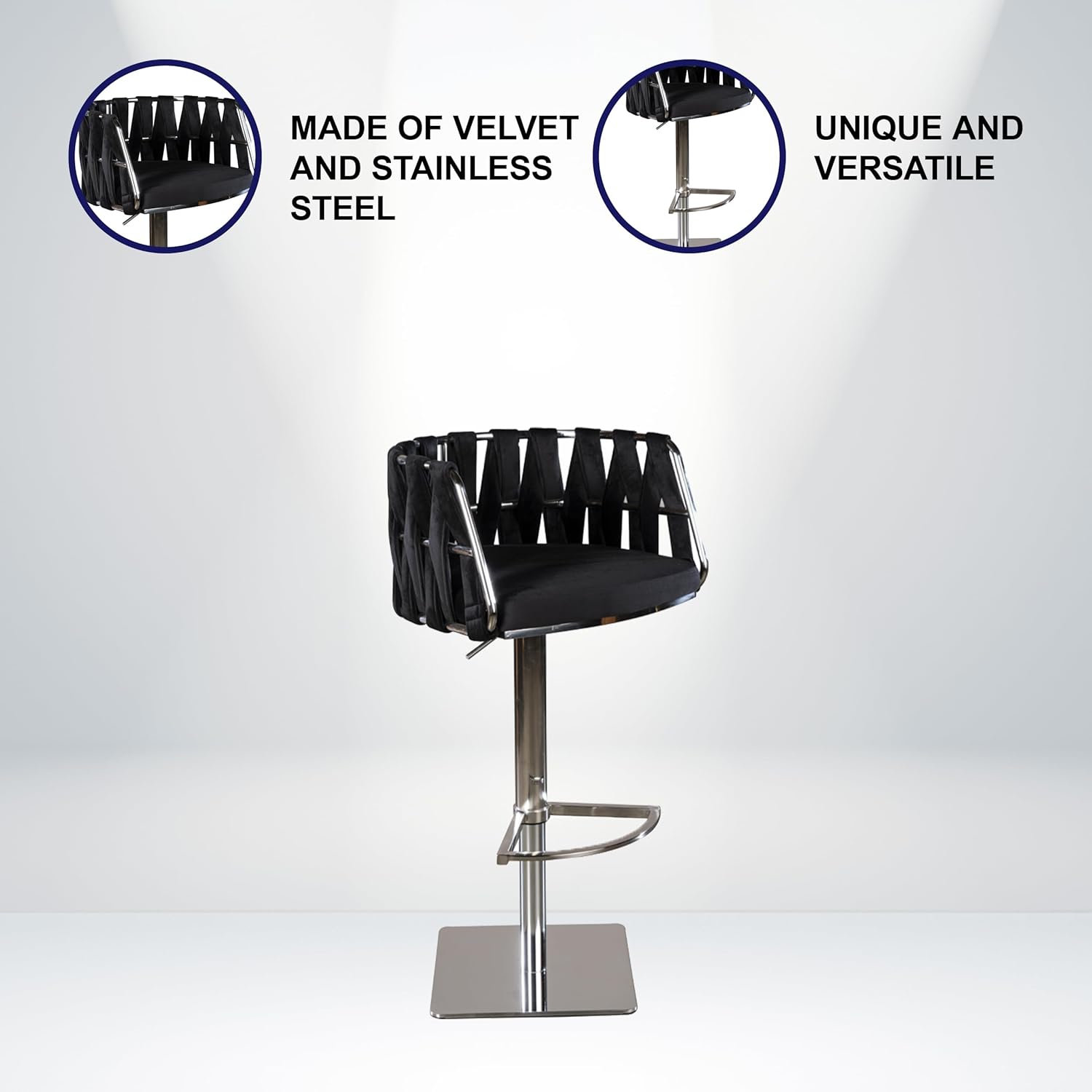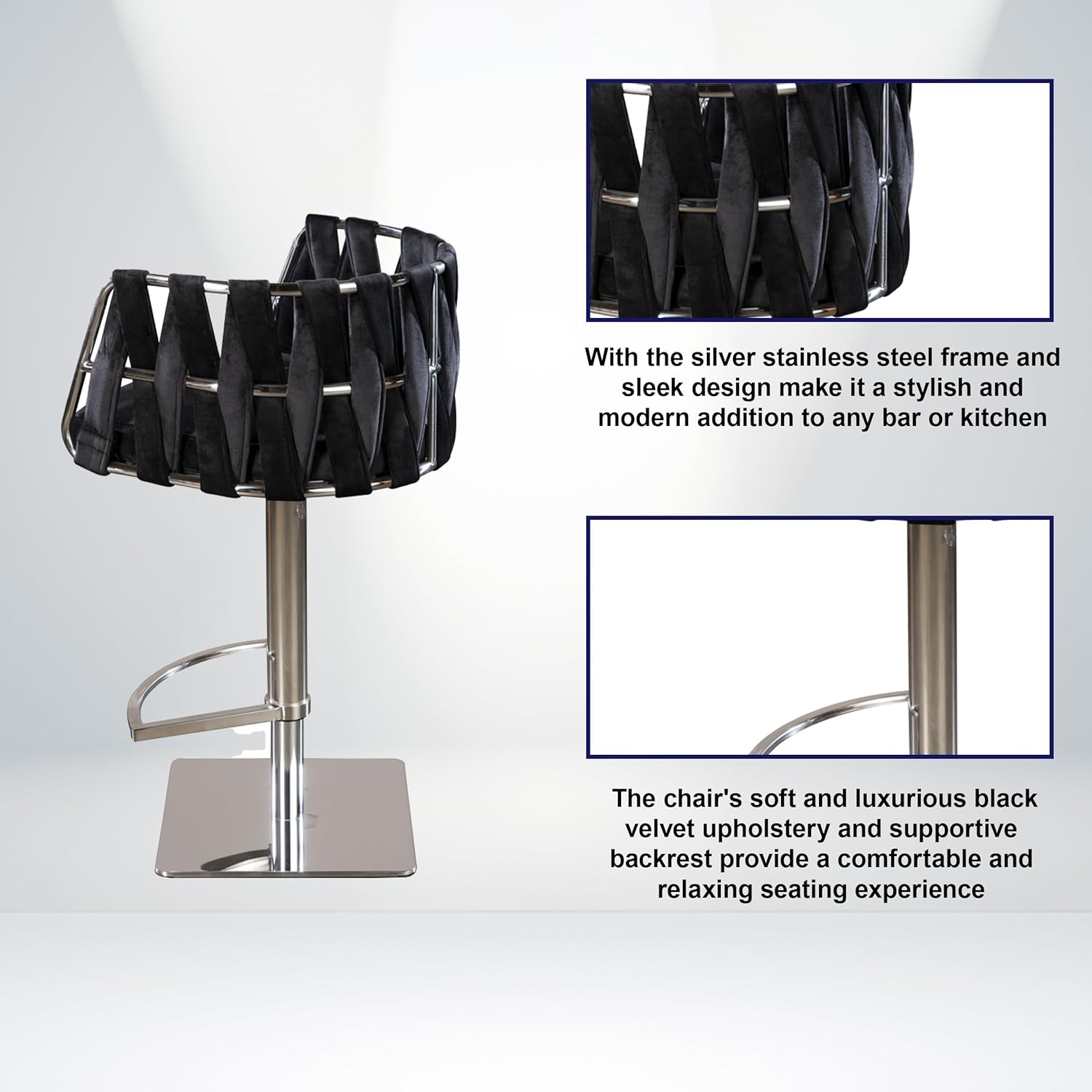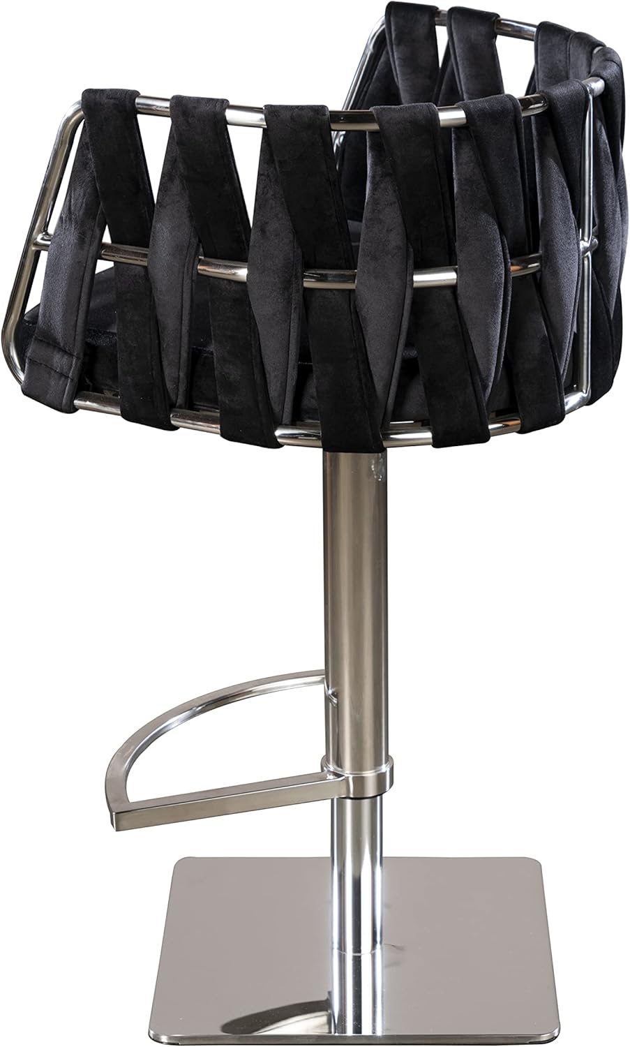 Velvet/Stainless Steel Indoor Milano Adjustable Swivel Counter Chair Bar Stool, Silver, Black