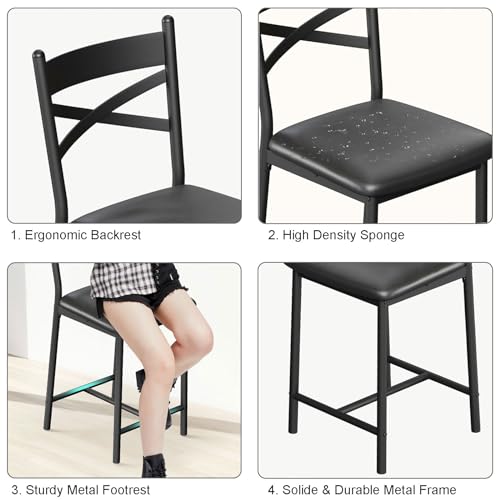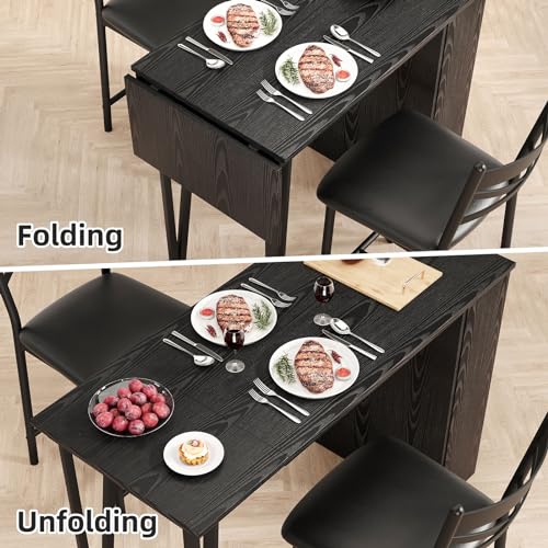GAOMON Dining Table Set for 2, Kitchen Bar Table and Chairs for 2, 3-Piece Kitchen Table Set with 2 Upholstered Chairs, Expandable Counter Height Bar Table Set with 3 Storage Shelves, Black