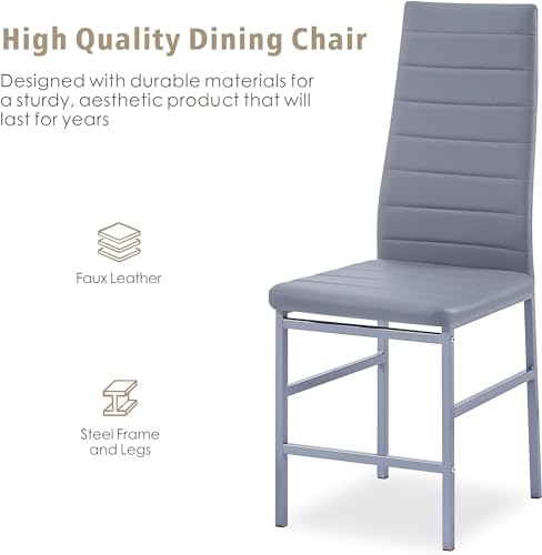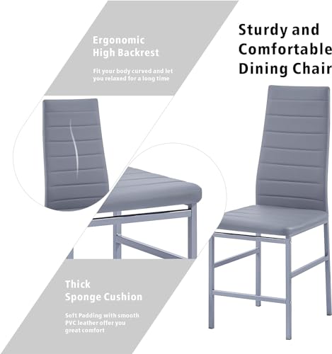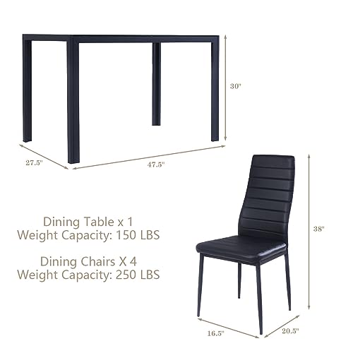 Giantex 5 Pcs Dining Table Set for 4, Modern Glass Tabletop Kitchen Table and Chairs, Rectangular Metal Frame Table with Leather Padded 4 Seats for Small Spaces Apartment