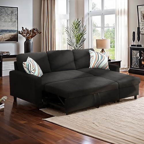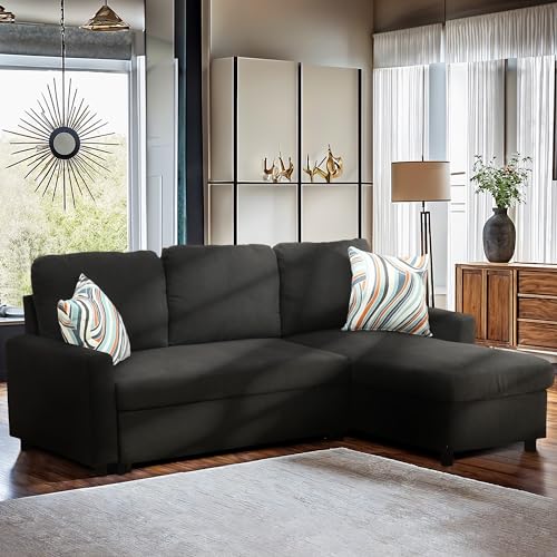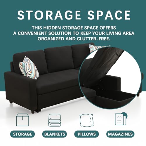 Modern L-Shaped Couch SofaBed Reversible Sectional Sofa Sleeper with Storage Chaise Lounge, Red