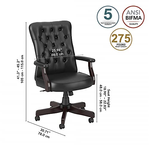 Bush Furniture Fairview High Back Tufted Office Chair with Arms in Black Leather