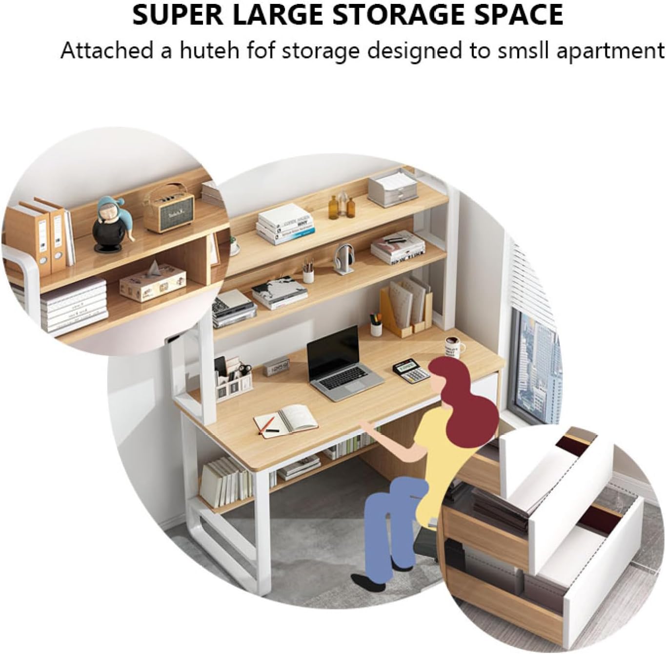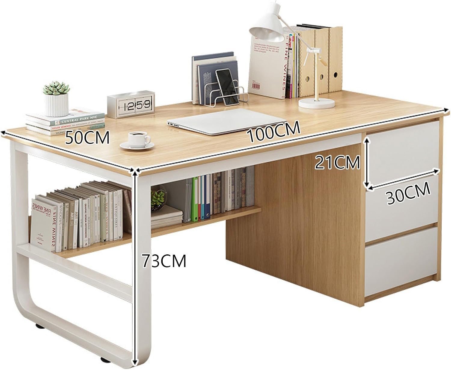 Home Office Desk with 3 Drawers & Storage Shelves, Modern Style Writing Desk Computer Desk Space Saving Home Office Workstation(100 CM, White)