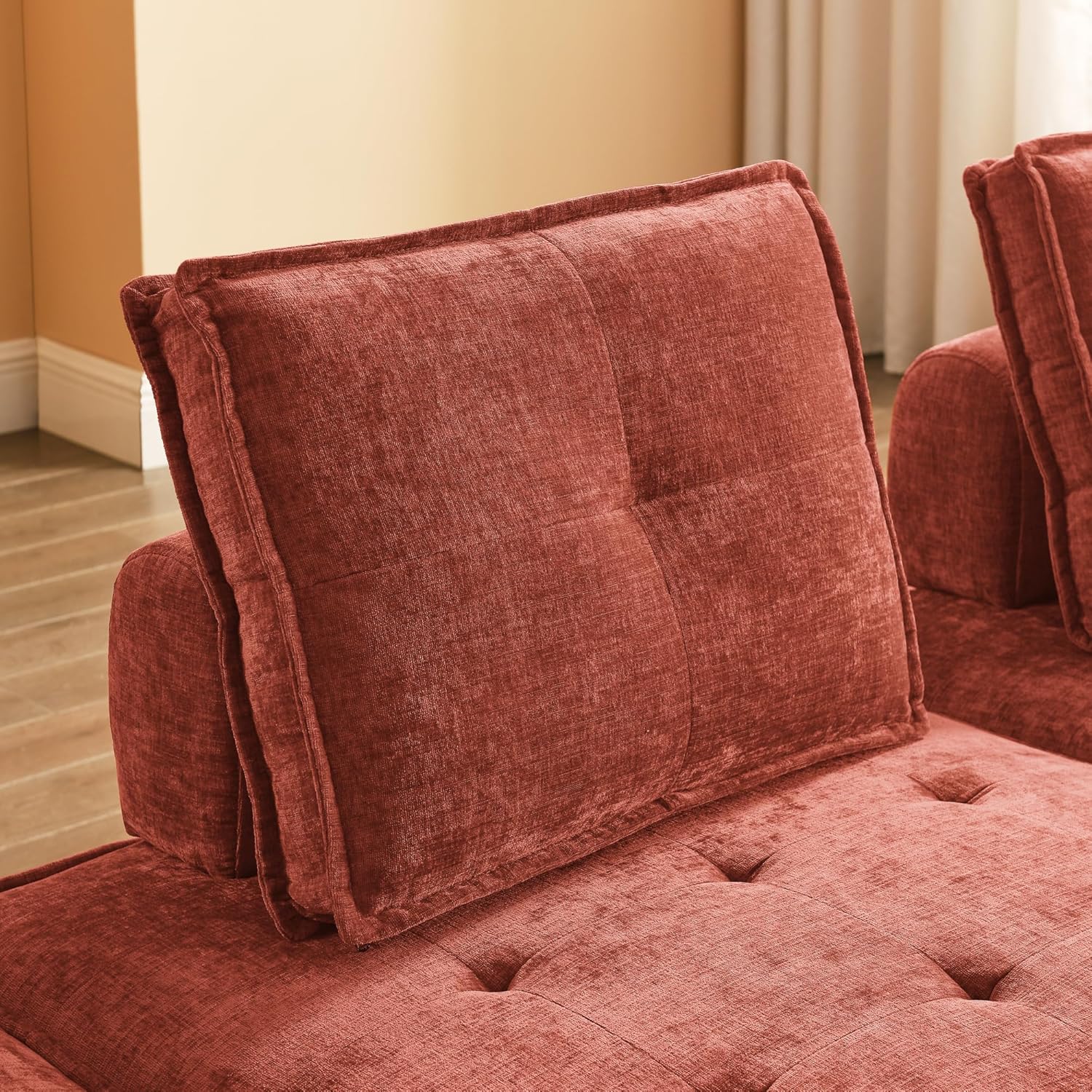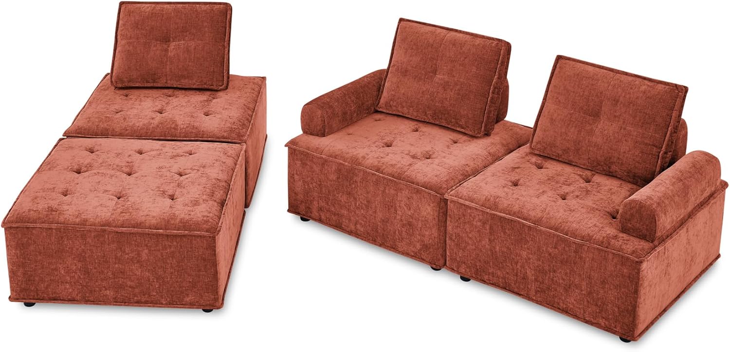 99Inch L-Shape Chenille Modular Sectional Sofa, Upholstered Couch DIY Combination Set with Plastic Black Legs, Home Furniture, for Living Room Office, Red