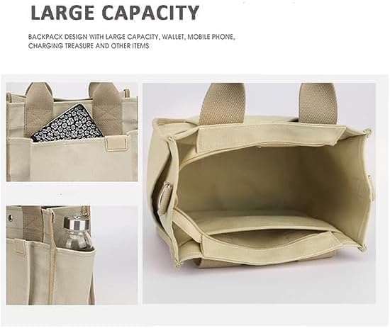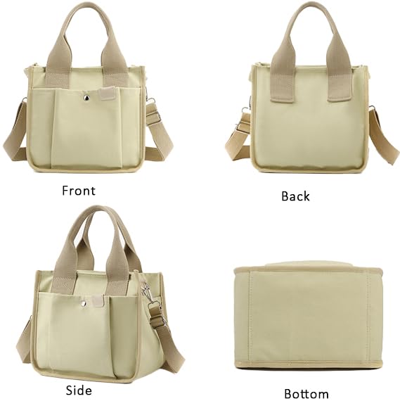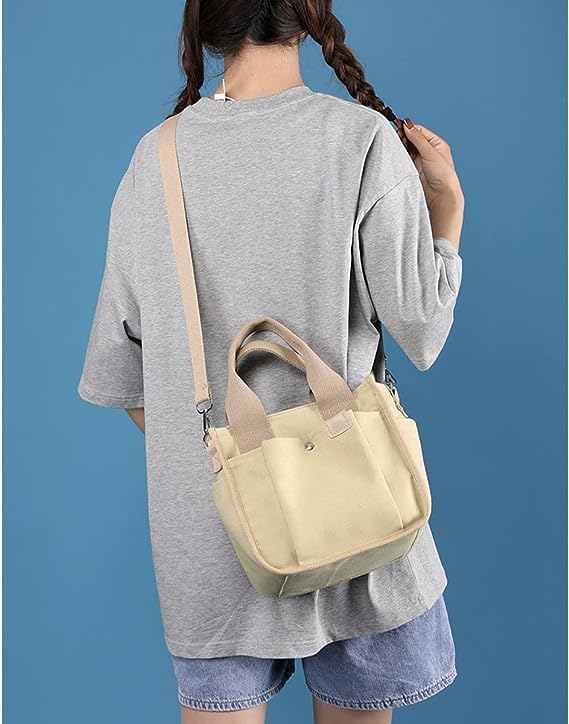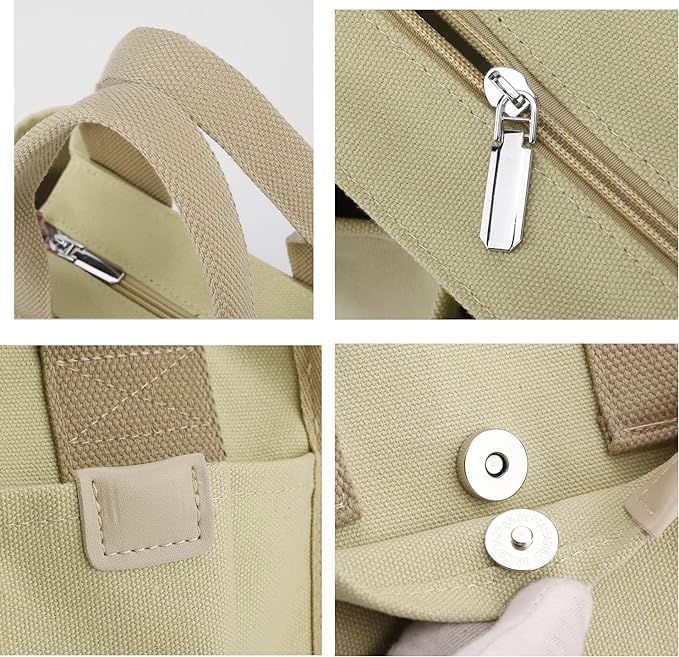 Small Canvas Tote Bag with Zipper, Canvas Multi-Pocket Crossbody Bag Purse Top Handle Satchel Handbags