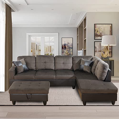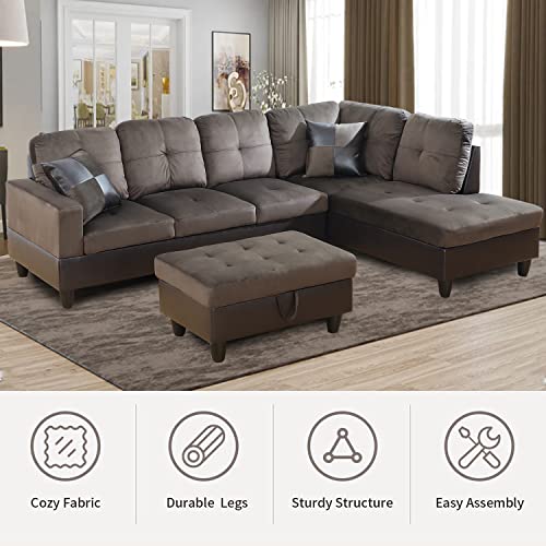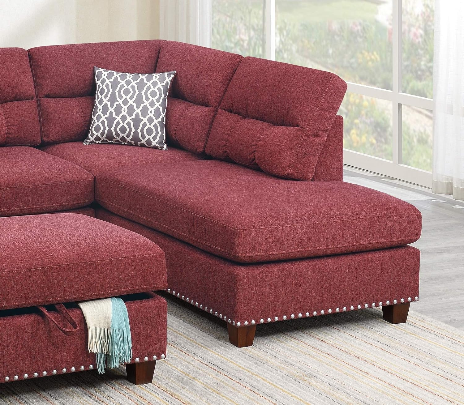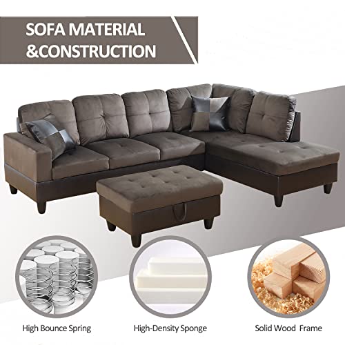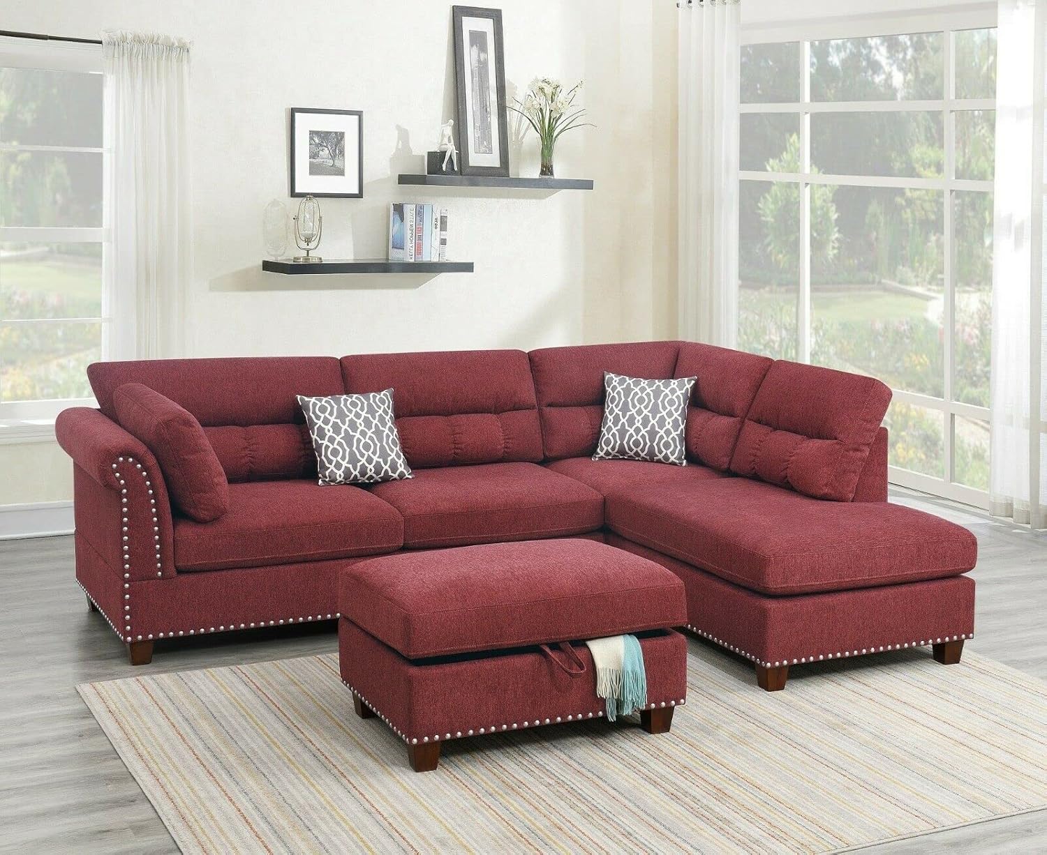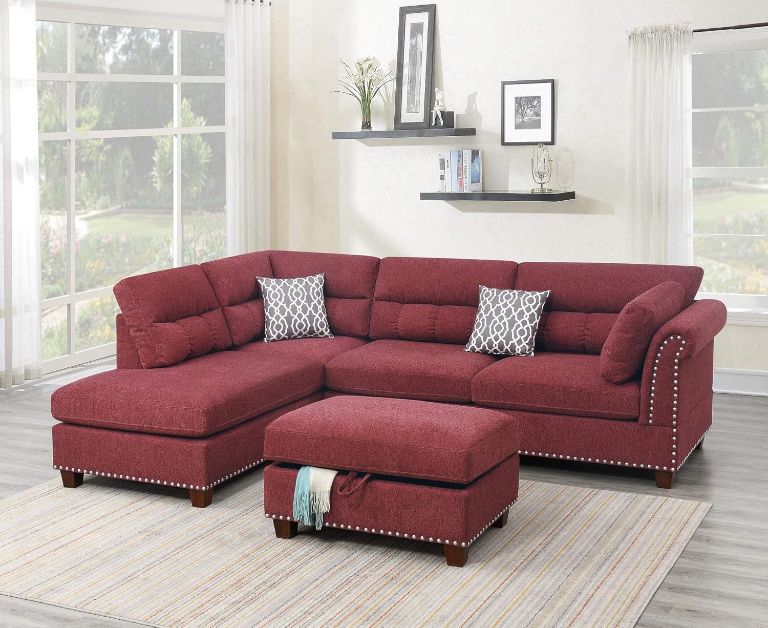 Microfiber Sectional Sofa Set,Living Room Furniture Sets,Modular Sectional Couches,L Shaped Couch for Living Room/Apartment(Left-Facing,Red Sectional Couch)