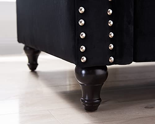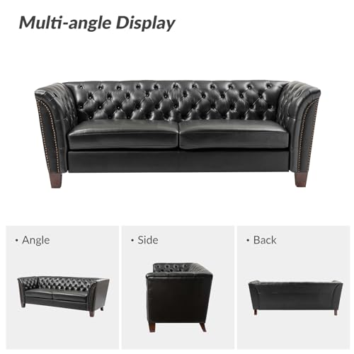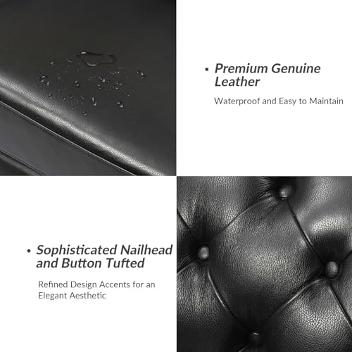 HULALA HOME Tufted Genuine Leather Sofa Couch 2-Seater Chesterfield Sectional Sofa for Living Room, Burgundy