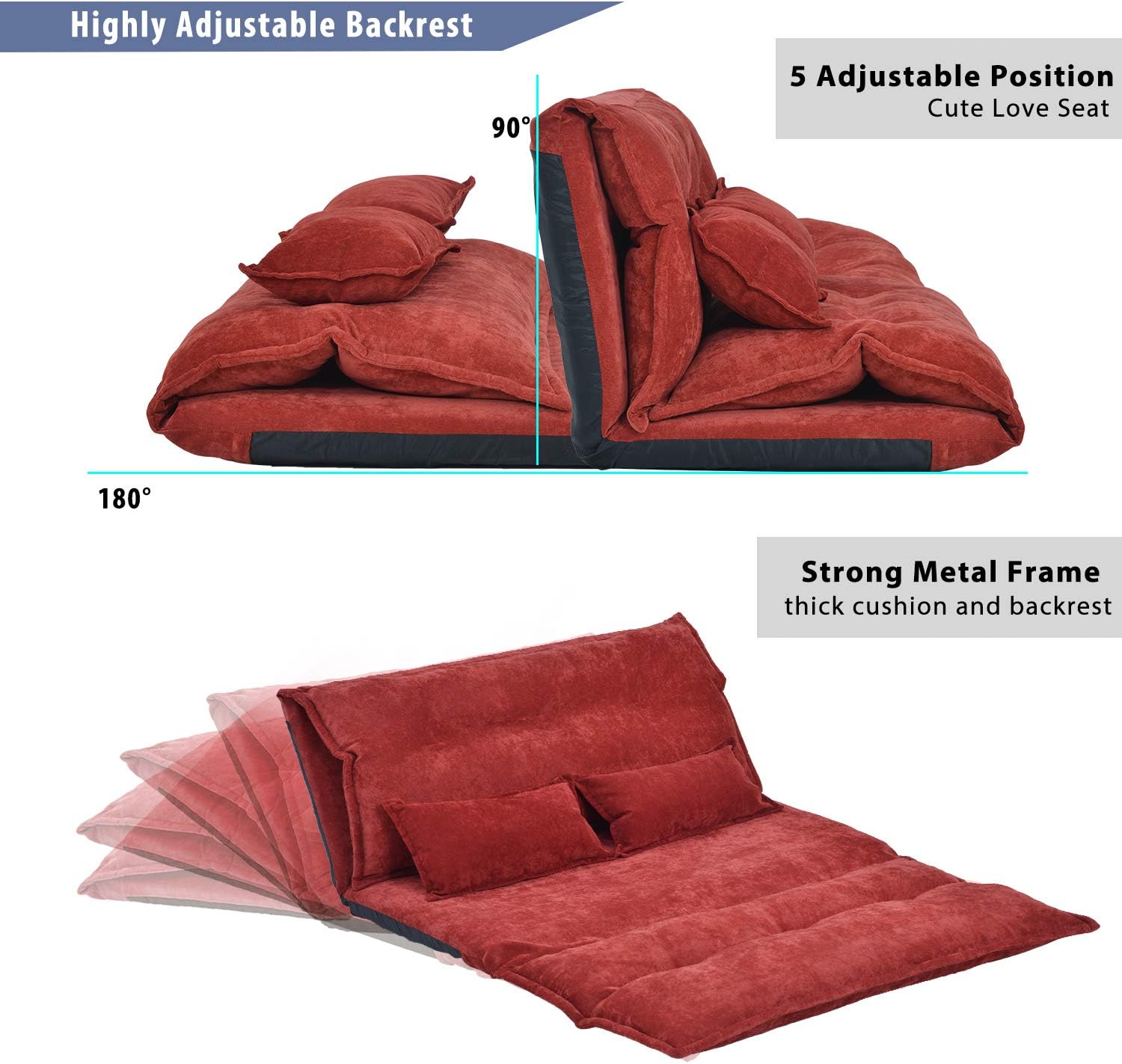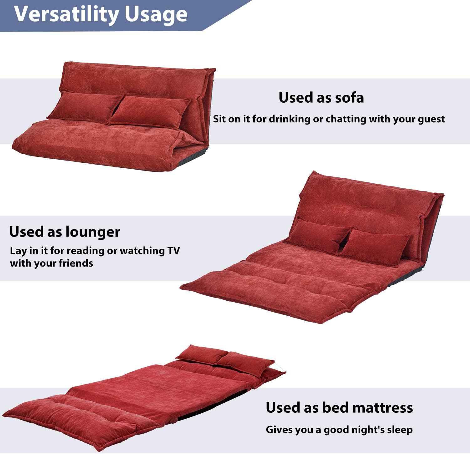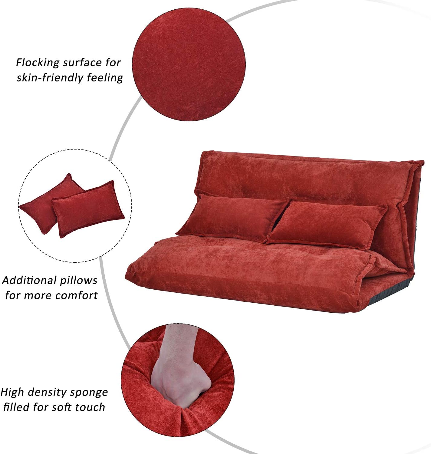NicBex Folding Sofa Bed Convertible Chair to Bed Reversible Sectional Sofa Floor Sofa Adjustable Folding Bring Pillow Suitable for Apartments, Dormitories, Studios, Offices, Red
