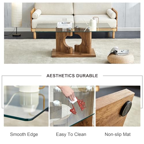 Glass Coffee Table for Living Room,Modern Rectangular Center Table,47.2'' Tempered Glass Table top with O-Shaped Bracket Pedestal for Office Apartment Livinig Room(White Coffee Table)