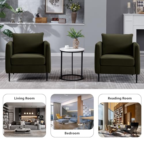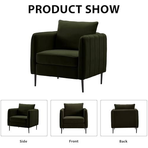 Modern Upholstered Accent Chair,Armchair with Square Arm,Velvet Sofa Chairs,for Bedroom, Living Room, Bedroom, Apartment,Mid-Century Modern Accent Chair for Living Room (Wine Red)
