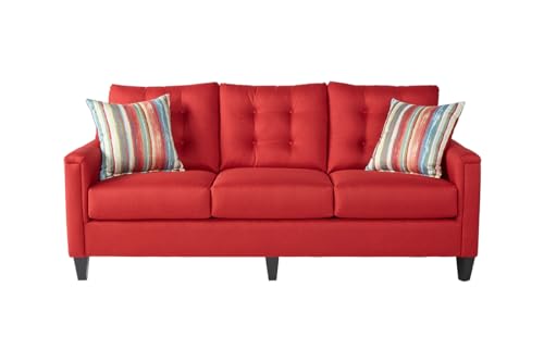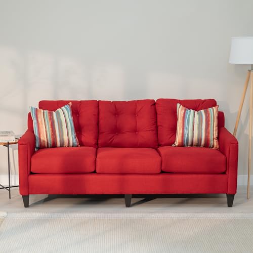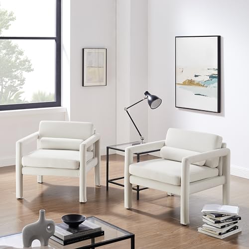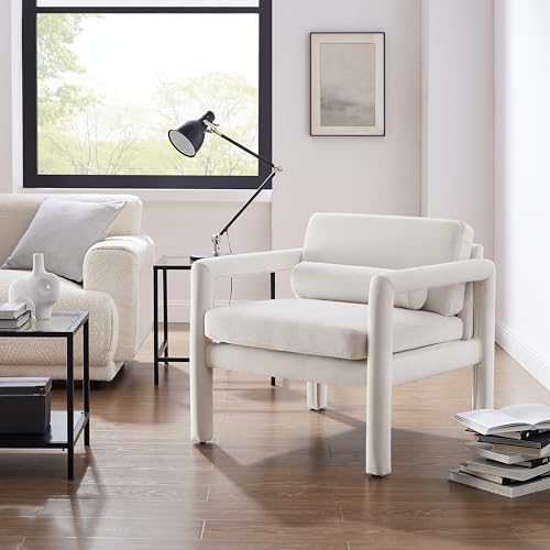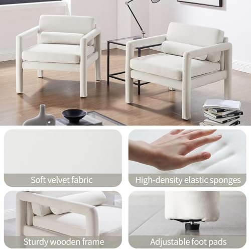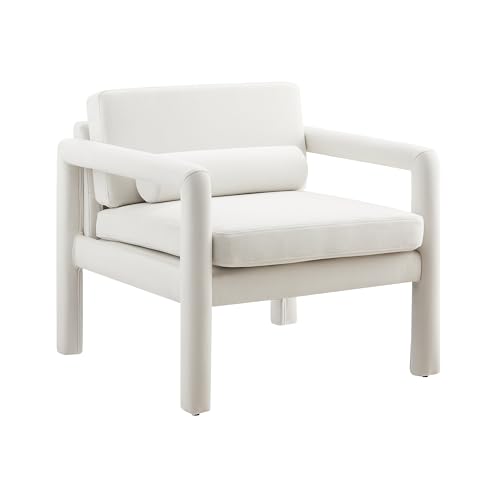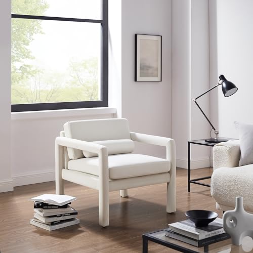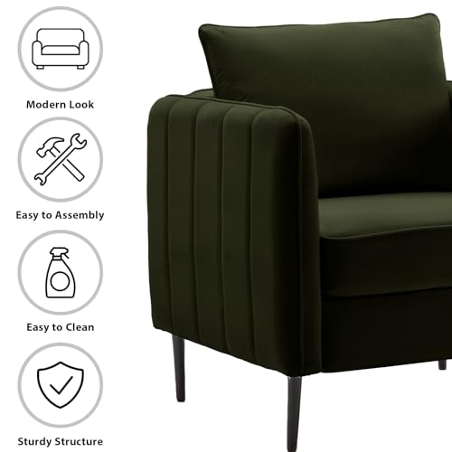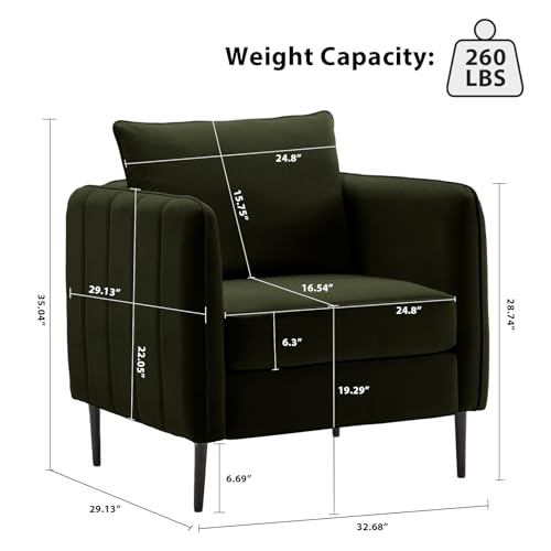 Art Leon Modern Accent Chair, Velvet Upholstered Arm Chair with Pillow, Single Sofa Chair for Living Room Bedroom, Red