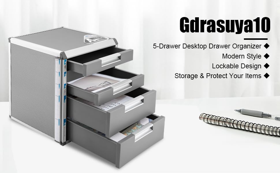 5-Drawer Vertical File Cabinet, Privacy Protection Cabinet with Lock 14in Deep Fully Assembled Filing Cabinet Small Aluminum Alloy File Storage Cabinets for A4/Legal/Letter File (5-Drawer)