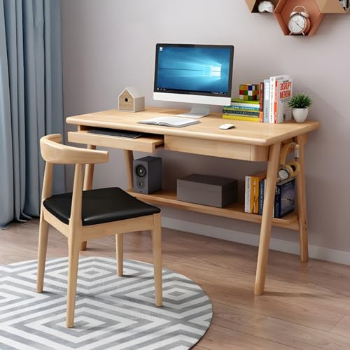 CraftThink Writing Desk, Computer Desk Study Table Work Desk with Keyboard Tray, 2 Drawers and Exterior Shelf for Home Bedroom Office Study, White 55" L x 23.5" W x 29.5" H without Chairs