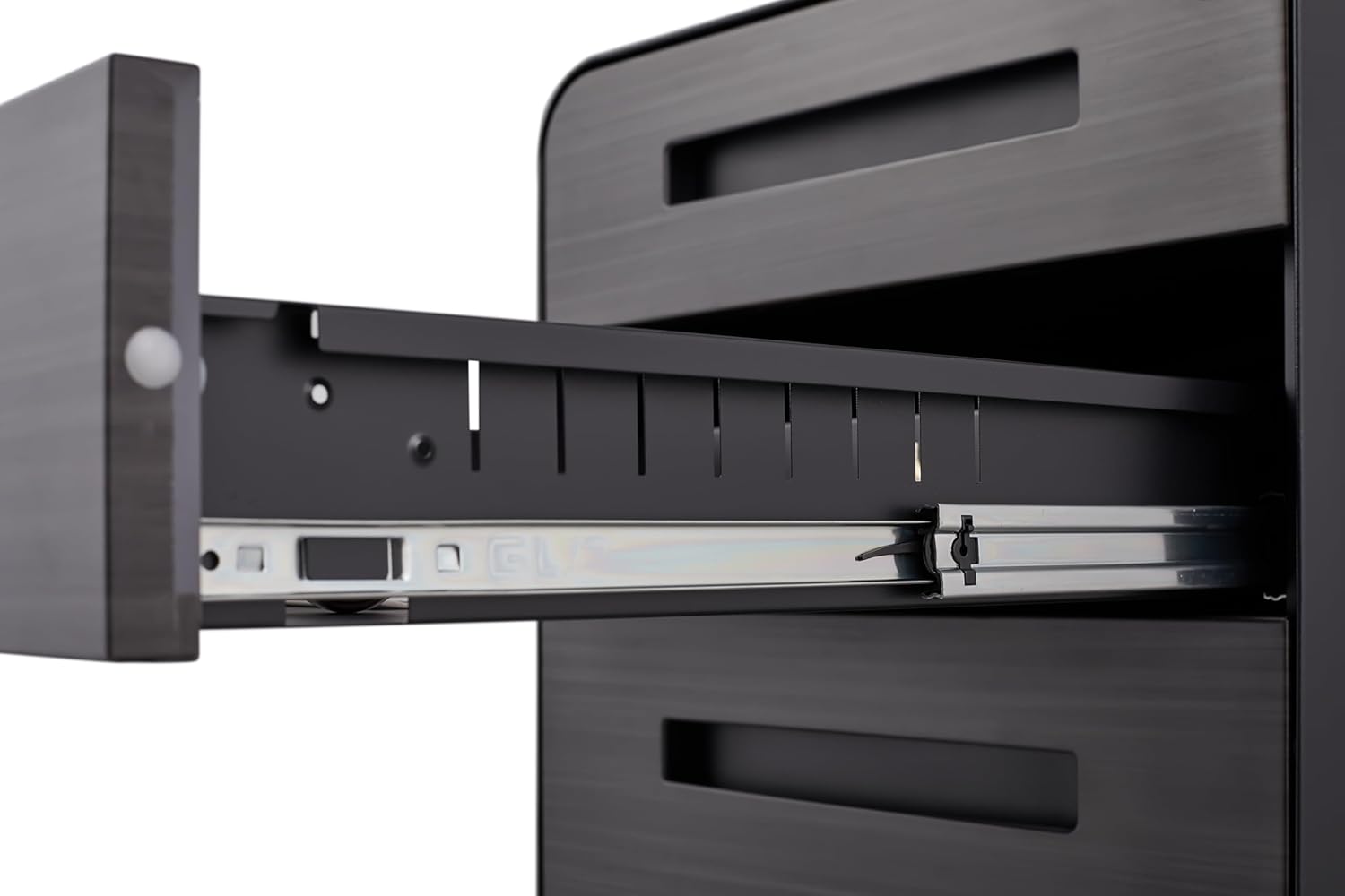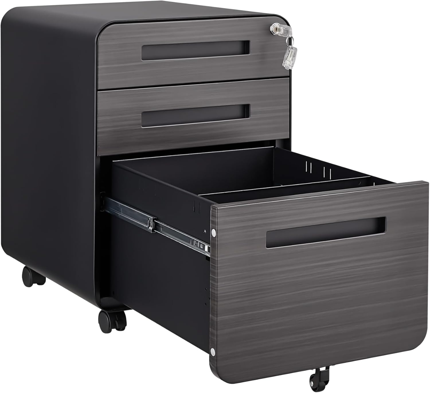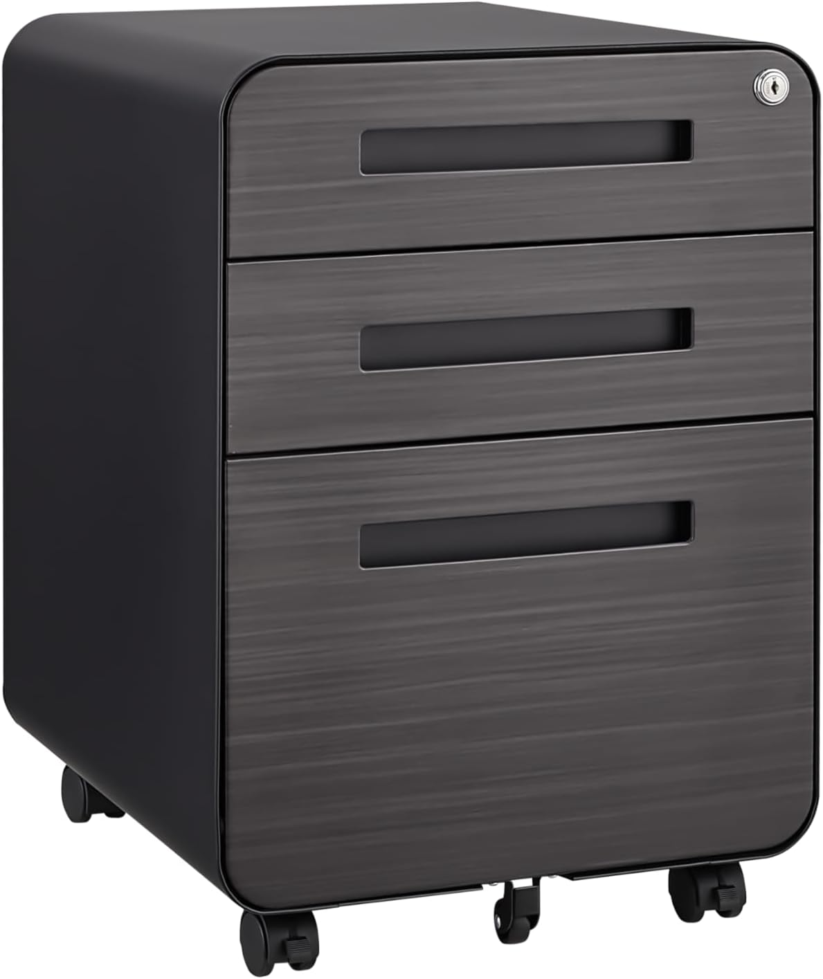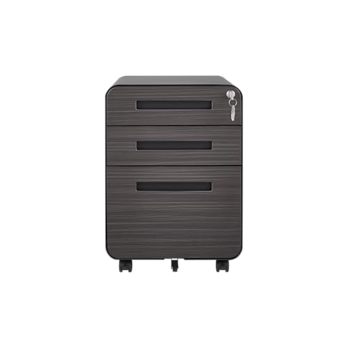 3 Drawer Mobile File Cabinet Under Desk Office,Simple Style Versatile Storage Cabinet for Legal/Letter/A4 Files, 5 Wheel Design Anti-Tilting Cold Rolled Steel Waterproof Moisture-Proof Black (Black)