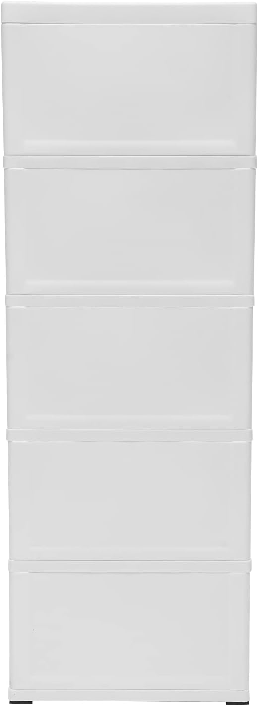 Drawer Locker, Office File Cabinet, Bedroom Cabinet Plastic Dresser Storage Cabinet, 5-Level Stackable Vertical Storage Tower, Hallway Entrance Cabinet with 4 Rollers, White