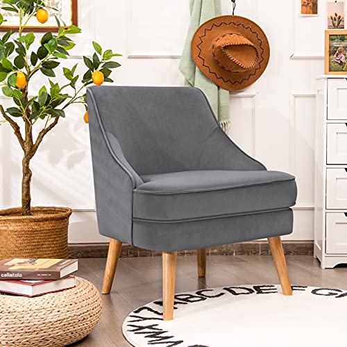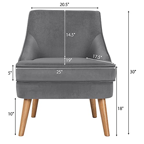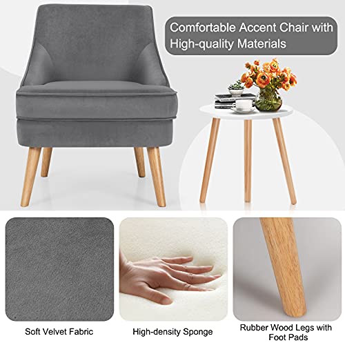 Giantex Set of 2 Velvet Accent Chairs, Mid Century Single Sofa Chair w/Rubber Wood Legs, Comfy Slipper Chair, Upholstered Armless Leisure Side Chair for Living Room, Bedroom, Meeting Room, Pink
