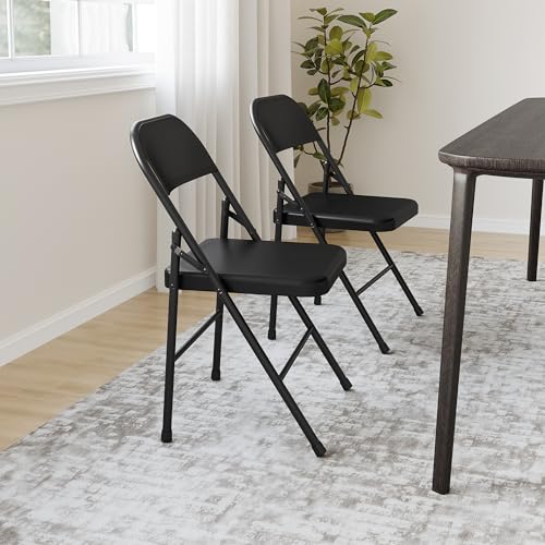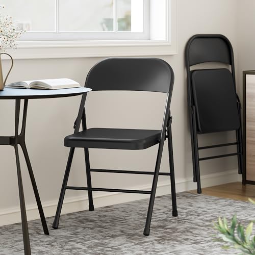 IDEALHOUSE Folding Chairs 4 Pack, Foldable Chairs with Metal Frame Hold Up to 350 Pounds, Portable Beige Folding Chairs Suitable for Dining Room, Living Room, Office, Indoor and Outdoor Events