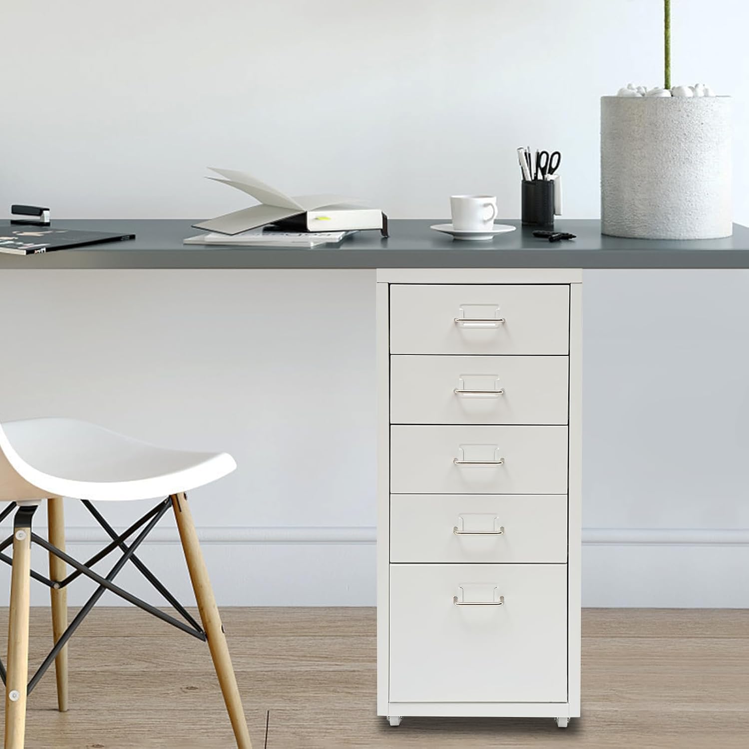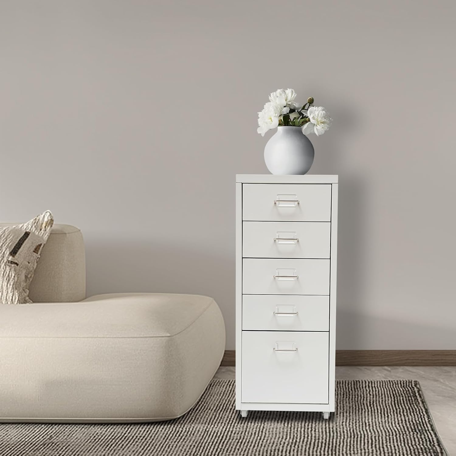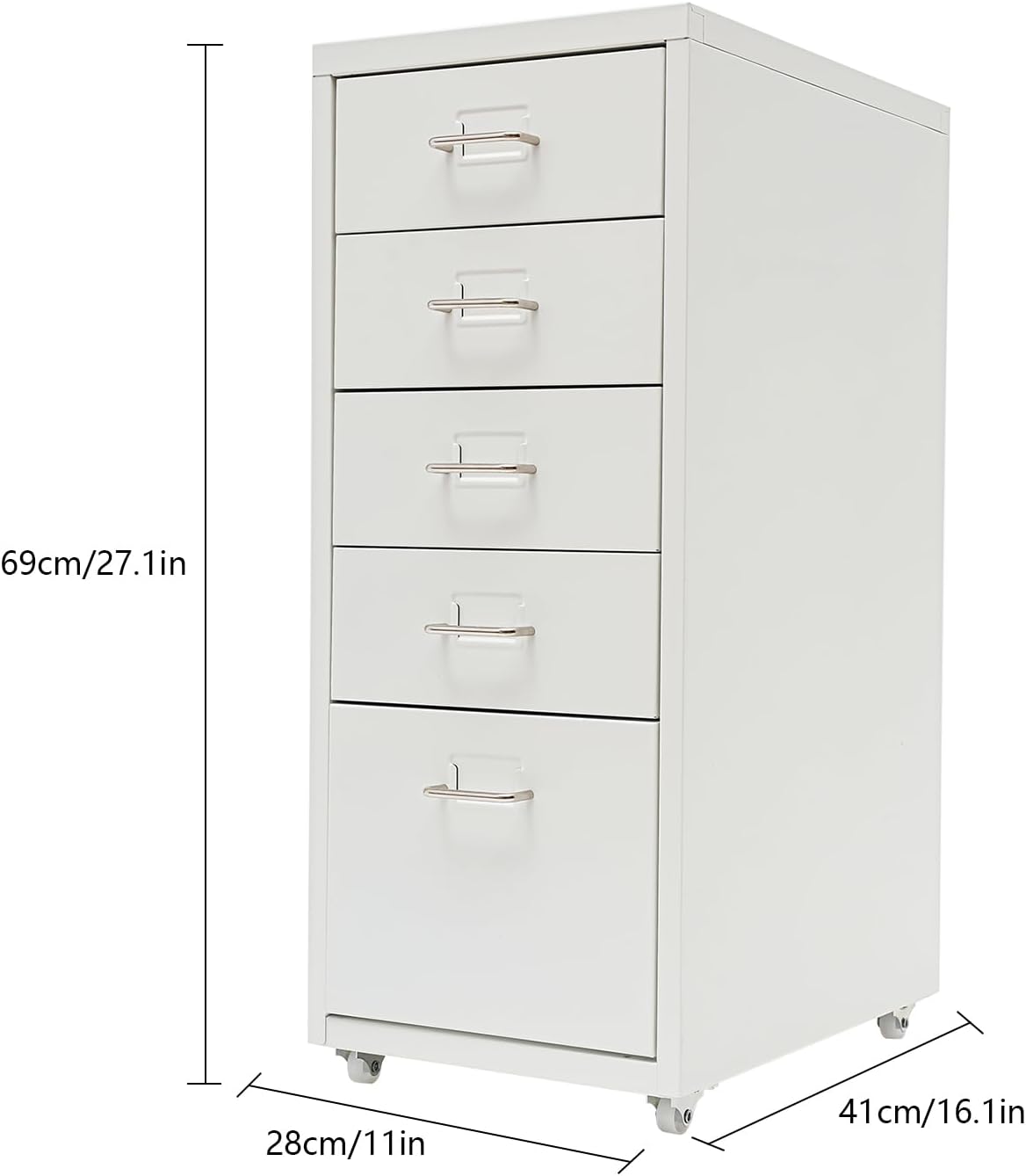 File Storage Cabinet,Storage Cabinet with 5 Drawers, 5-Drawer Storage Cabinet with Wheels,File Cabinet,Office Cabinet with Drawers, Home Office,White,for kitchen,Bedroom,Living Room