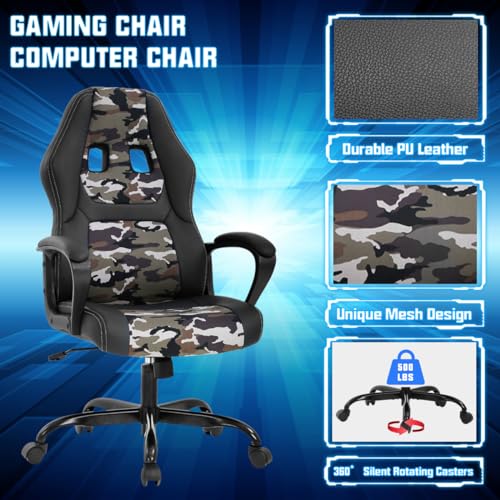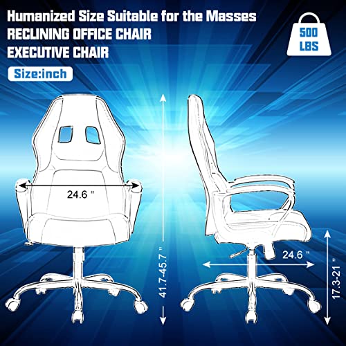 Gaming Chair Computer Chair Office Chair Ergonomic High Back Massage PC Desk Chair with Lumbar Support & Padded Armrest Racing Style Cheap Adjustable Swivel Chair for Women Men Adult, White