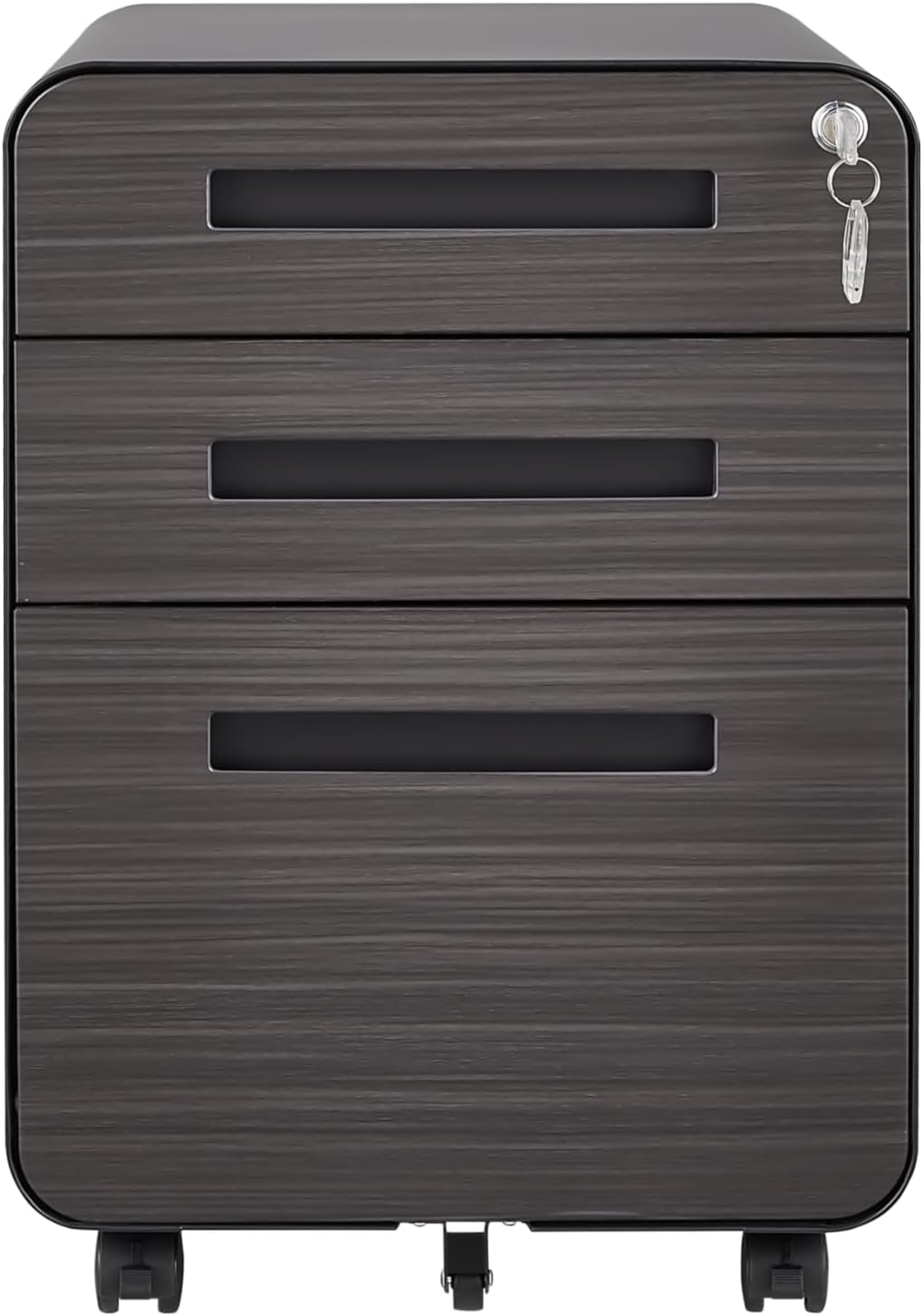 3 Drawer Vertical File Cabinet with Lock 5 Wheels Mobile Versatile Storage Cabinet Under Desk Office for Legal/Letter/A4 Size Cold Rolled Steel Moisture-Proof Waterproof Anti-Tilting Gray