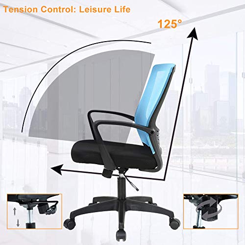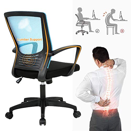 Meet perfect Office Chair, Mid Back Mesh Lumbar Support Home Office Computer Desk Chair Swivel Task Chair, Ergonomic Executive Chair on Rolling Wheels Height Adjustable for Men Women Back Pain-Blue