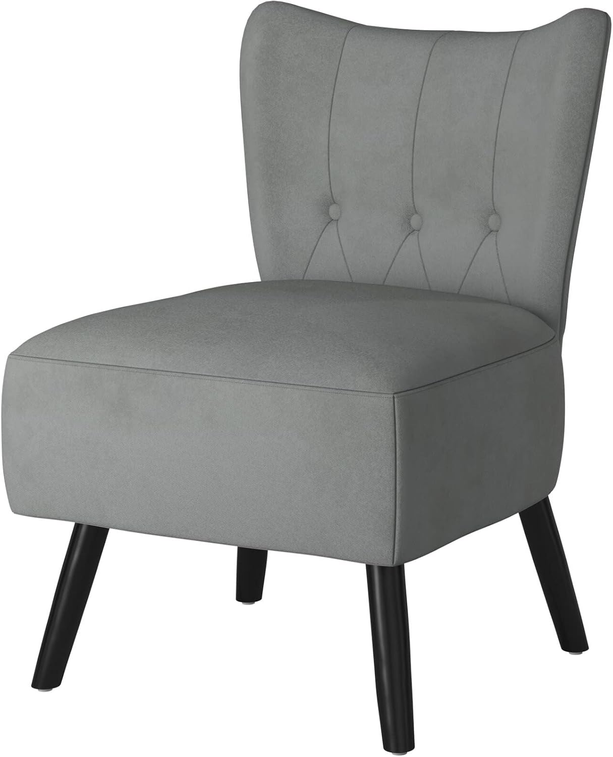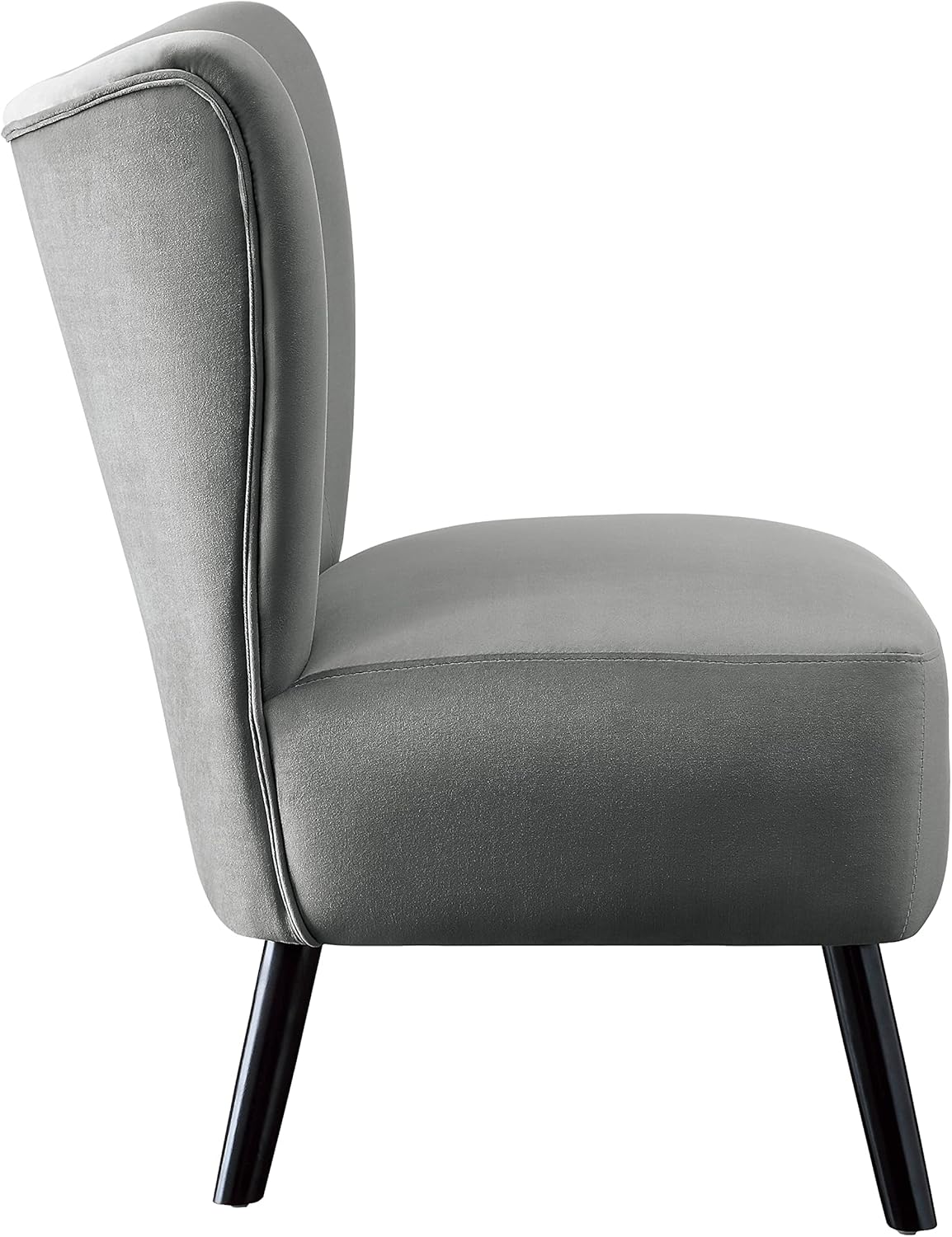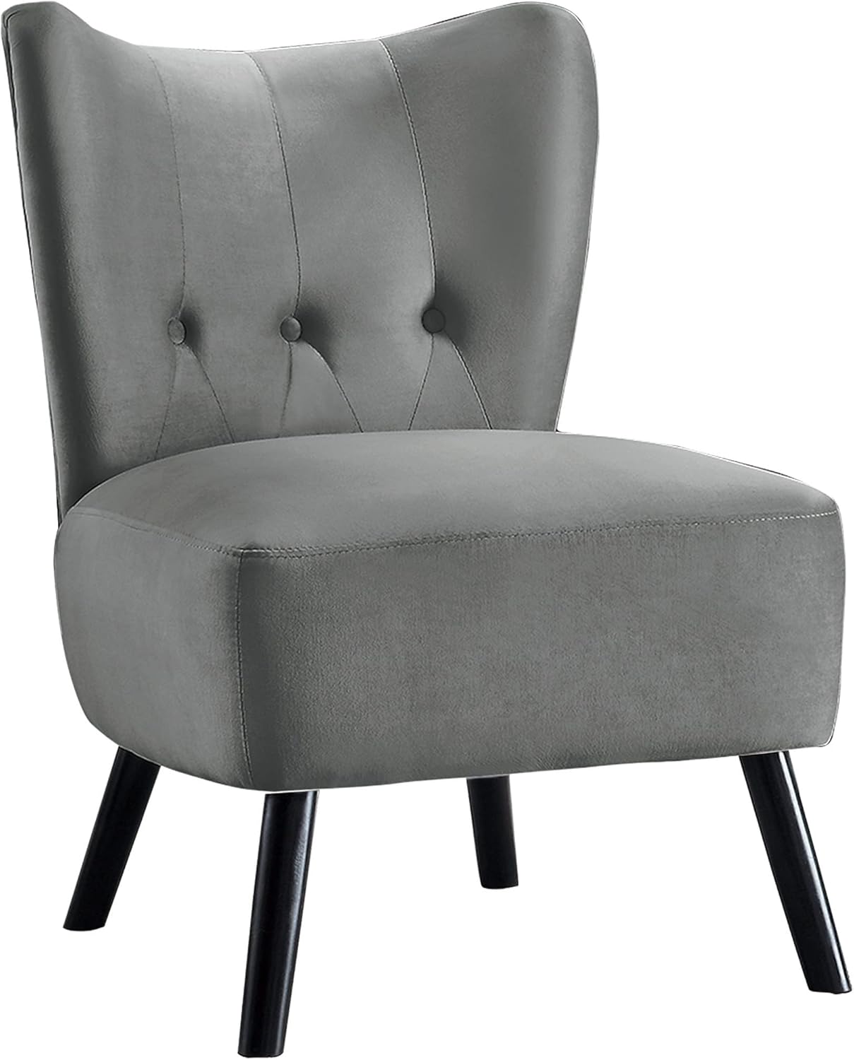 Unique Style Gray Velvet Covering Accent Chair Button-Tufted Back Brown Finish Wood Legs Modern Home Furniture