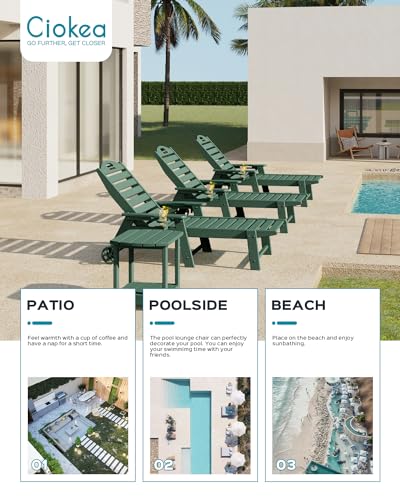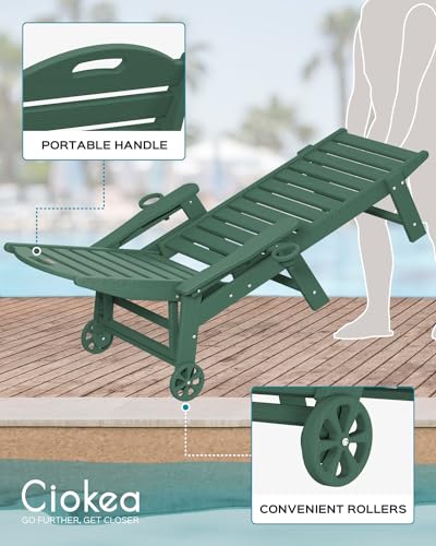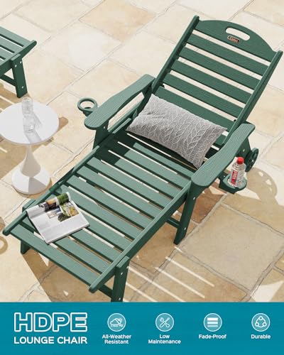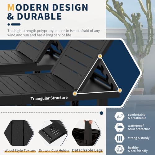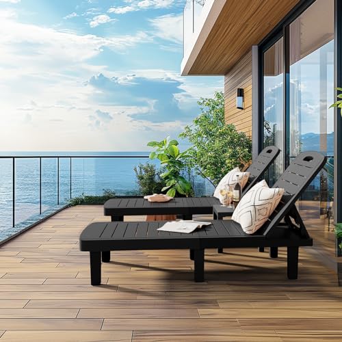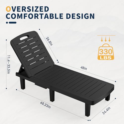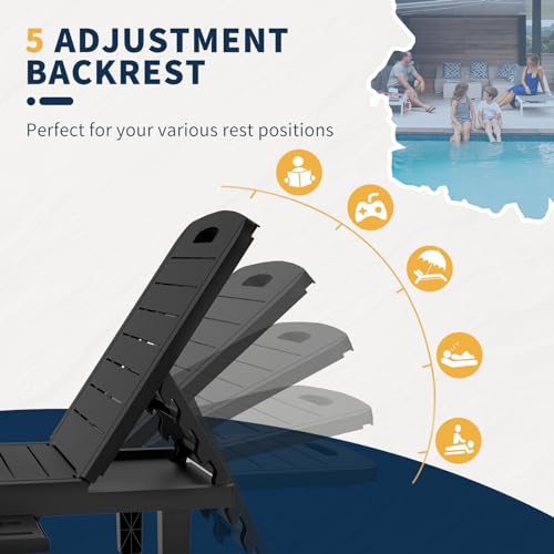 Oversized Outdoor Chaise Lounge Chairs Set of 2,Patio Lounge Chair with Adjustable Backrest, Pool Chaise Lounge with Cup Holder, Resin Chair for Poolside, Beach, Garden and Yard (Black)