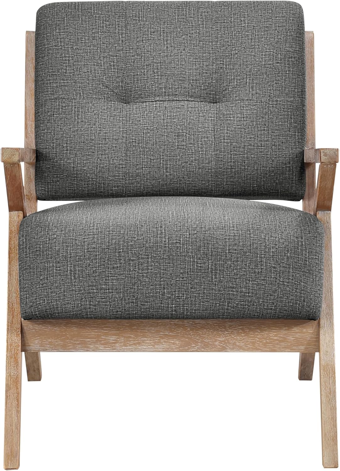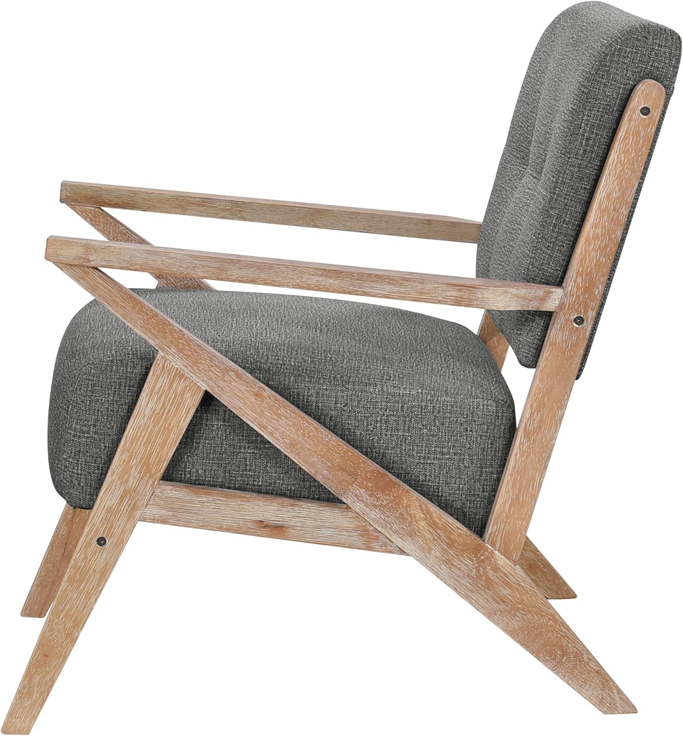 Modern Tufted Back Accent Chair 1pc Dark Gray Upholstery Antique Finish Solid Rubberwood Unique Design Furniture