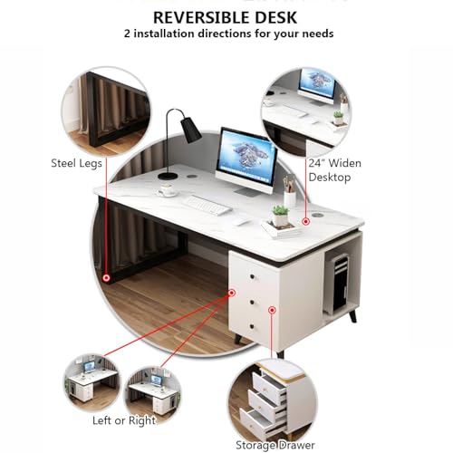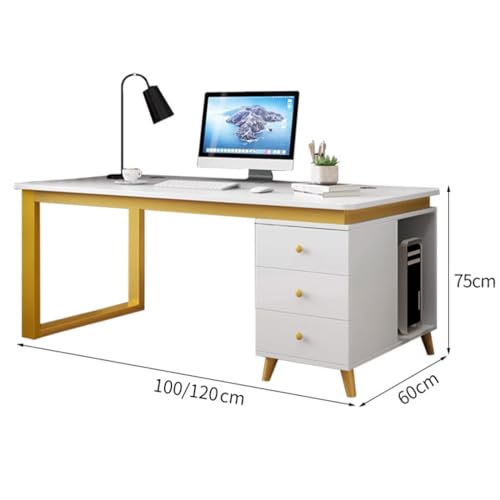 Computer Desk with Storage Drawer, Industrial Desk with Monitor Stand Modern Study Writing Table Workstation for Home and Office(120CM, White & Gold)