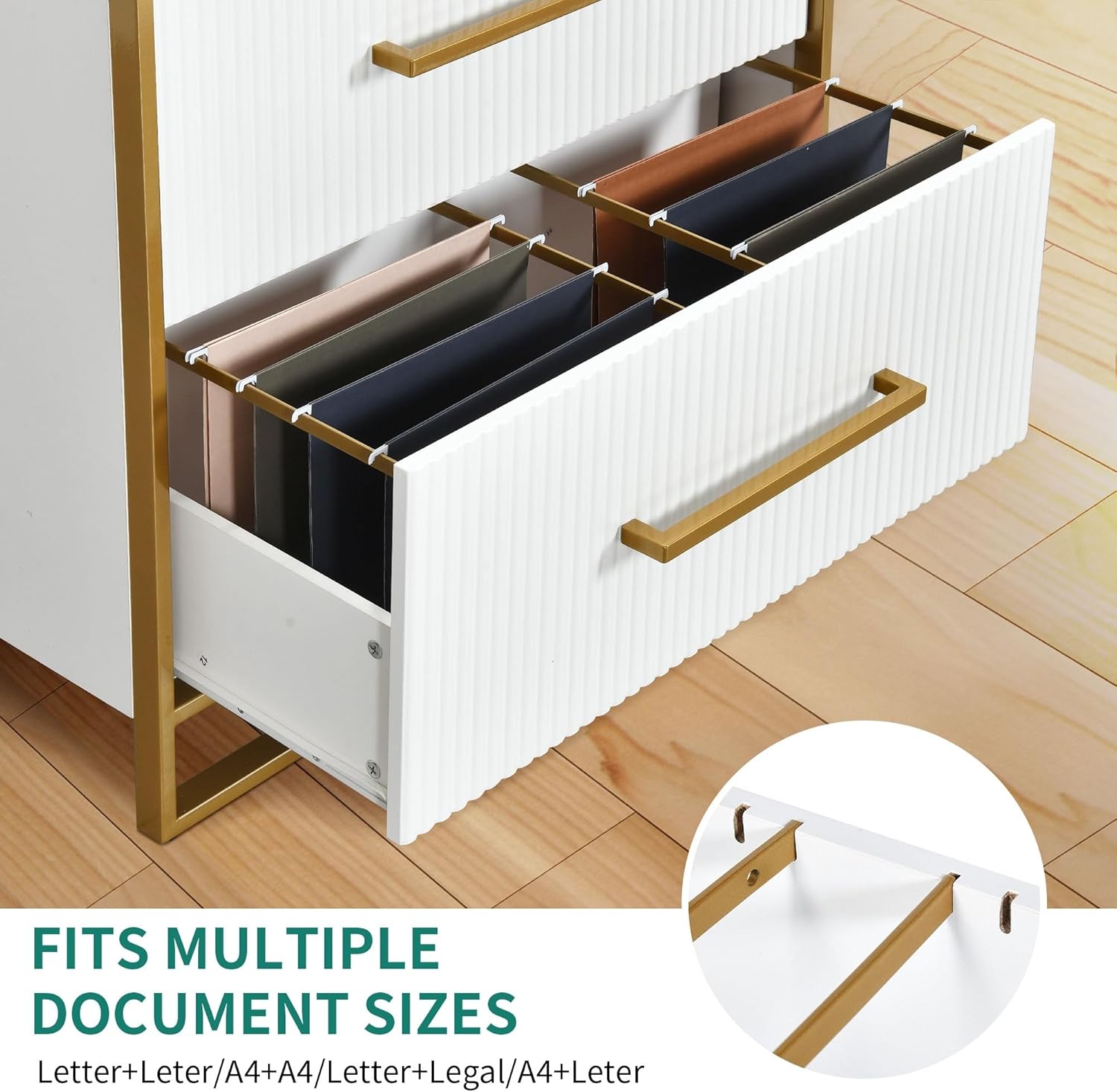 File Cabinet Lateral Filing Cabinets for Home Office with 3 Drawers Gold Frame White Modern Contemporary Wood