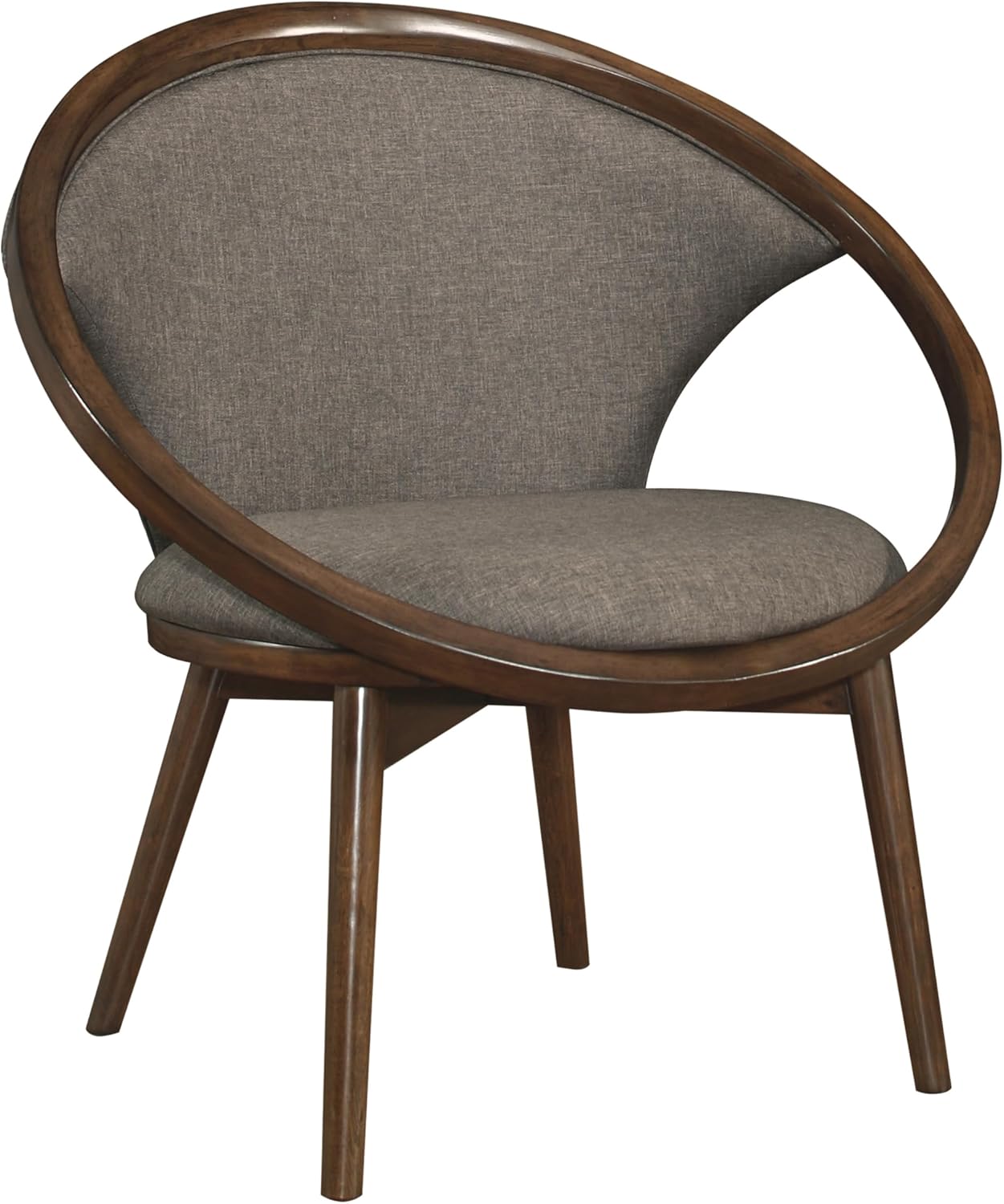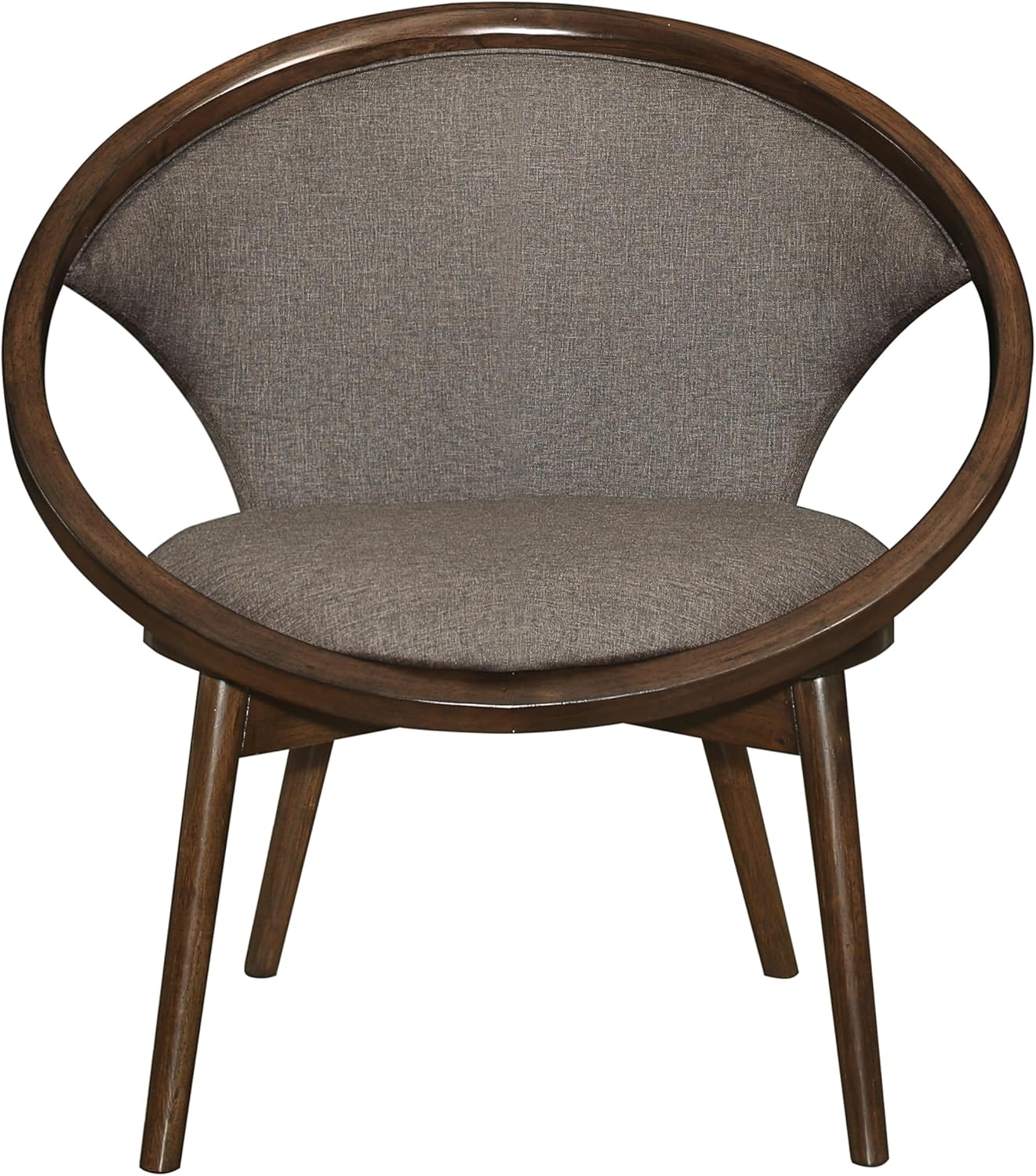Mid-Century Design Solid Rubberwood Unique Accent Chair 1pc Brown Fabric Upholstered Modern Home Furniture Walnut Finish Frame