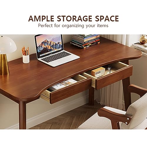 Computer Desk with 2 Drawers, Modern Home Office Desk Study Table Curved Solid Wood Writing Desk(31 Inch, White)