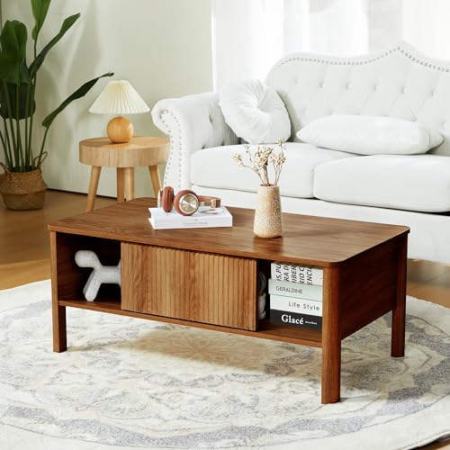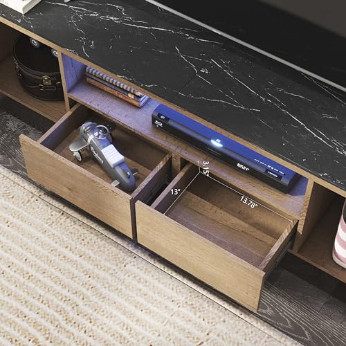 Led TV Stand and Coffee Table Set, Mid Century Modern TV Stand 65 inch TV Table Stand with Sliding Doors, Coffee Table with Storage, Marble Grain Wood Smart Large Living Room Table (Black)