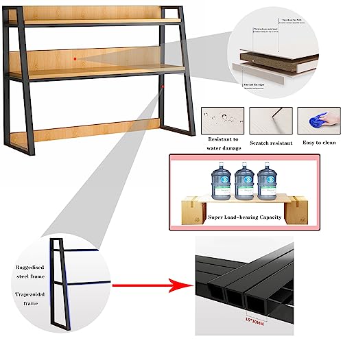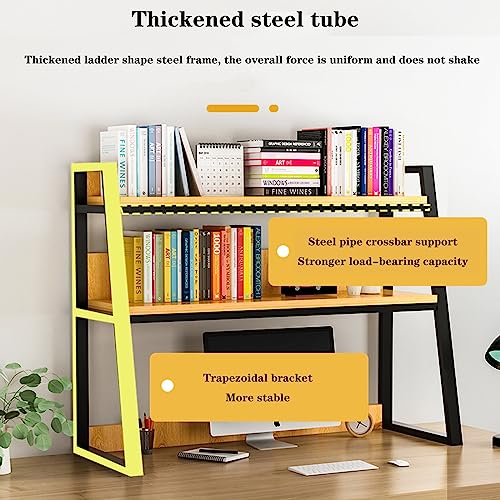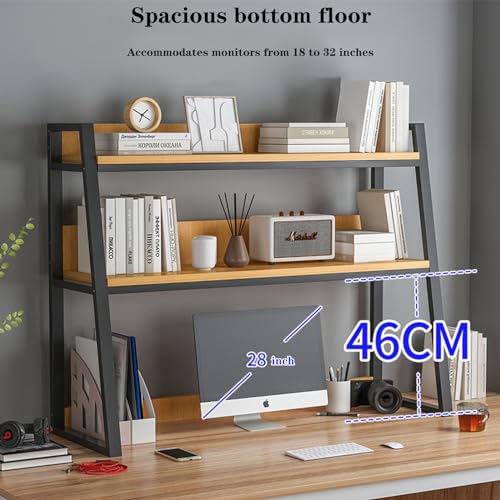Desktop Bookshelf Desk Organizer Shelf 3-Tier Metal Structured Wood Panels Desk Hutch Bookcase Display Rack Storage for Computer Monitor for Dorm Office Home,30x13x35