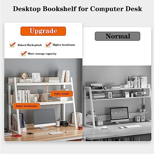 SOLKIN Desk Hutch for Dorm, Desktop Bookshelf White, Desk Shelves for Top of Desk Dorm, Computer Desktop Bookcase, for Home, Dorm, Office Supplies